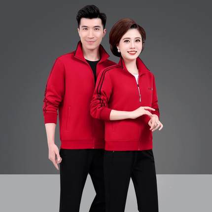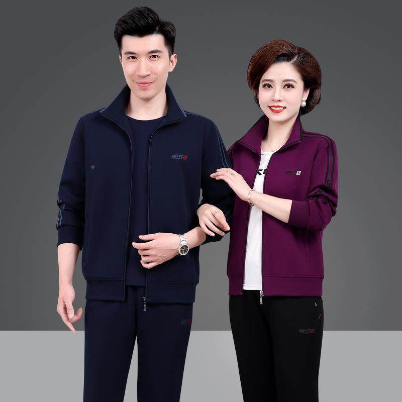 中老年运动套装装男65145074春秋季情侣休闲动运服女妈妈装外时尚