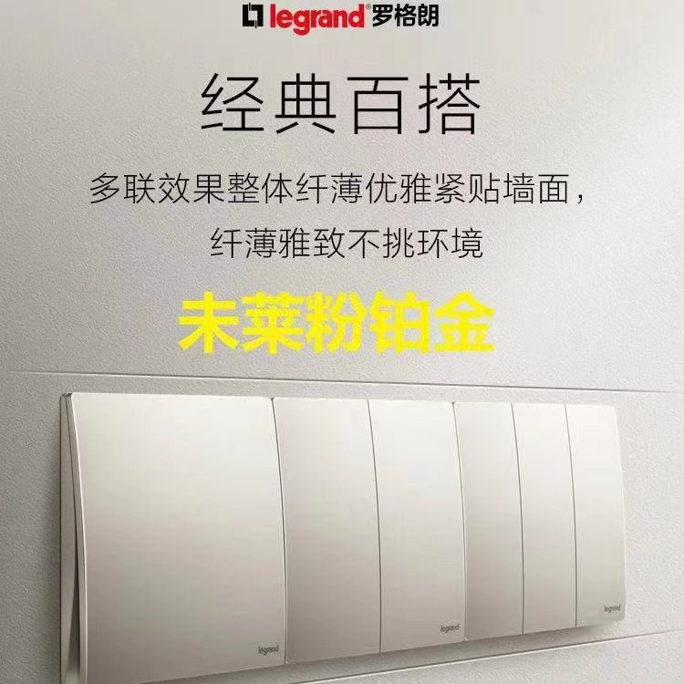 罗格朗开关插座未莱系列粉铂金色墙壁暗装86型电源五孔带USB面板