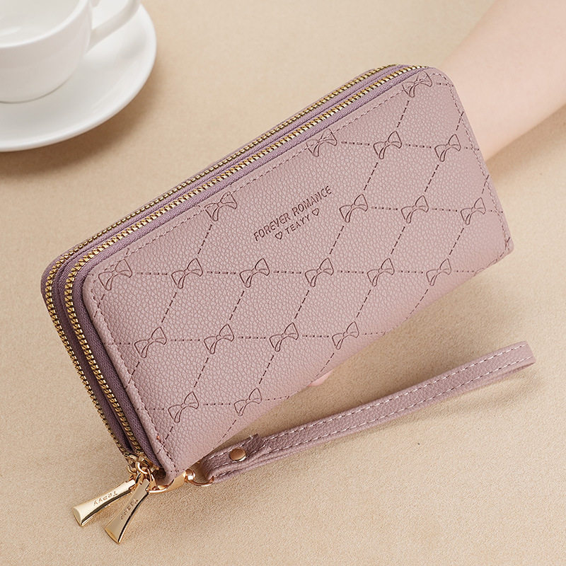 长款钱包女士 双层拉链大容量2025新款时尚百搭蝴蝶结手拿包钱夹