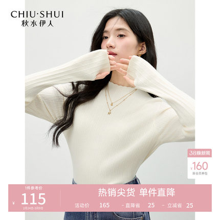 秋水伊人中高领毛针织衫修身上衣