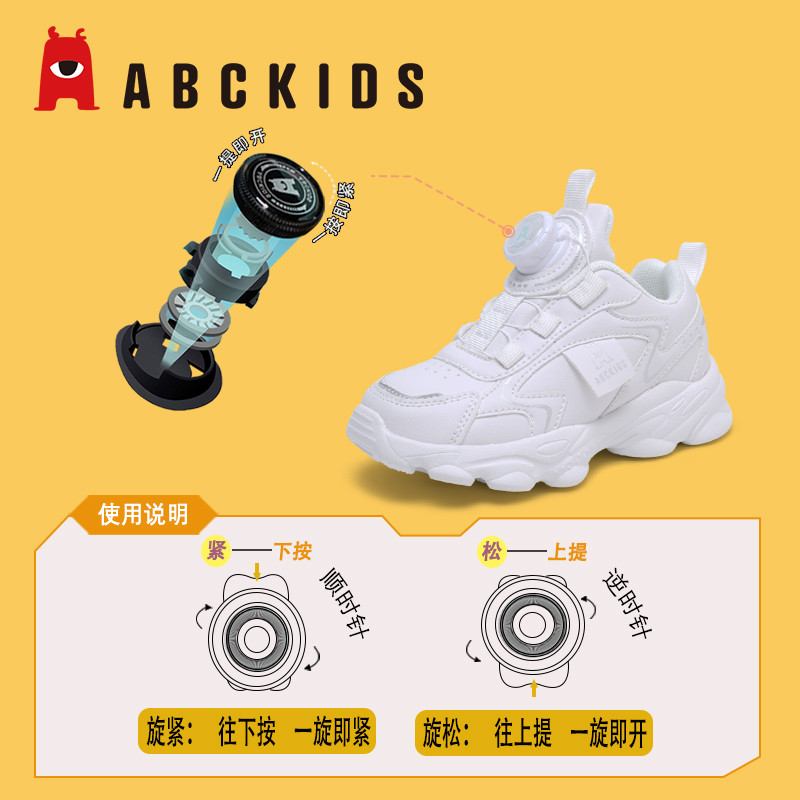ABCKIDS童鞋男童鞋2025秋季新款白色儿童运动鞋春秋款女童小白鞋
