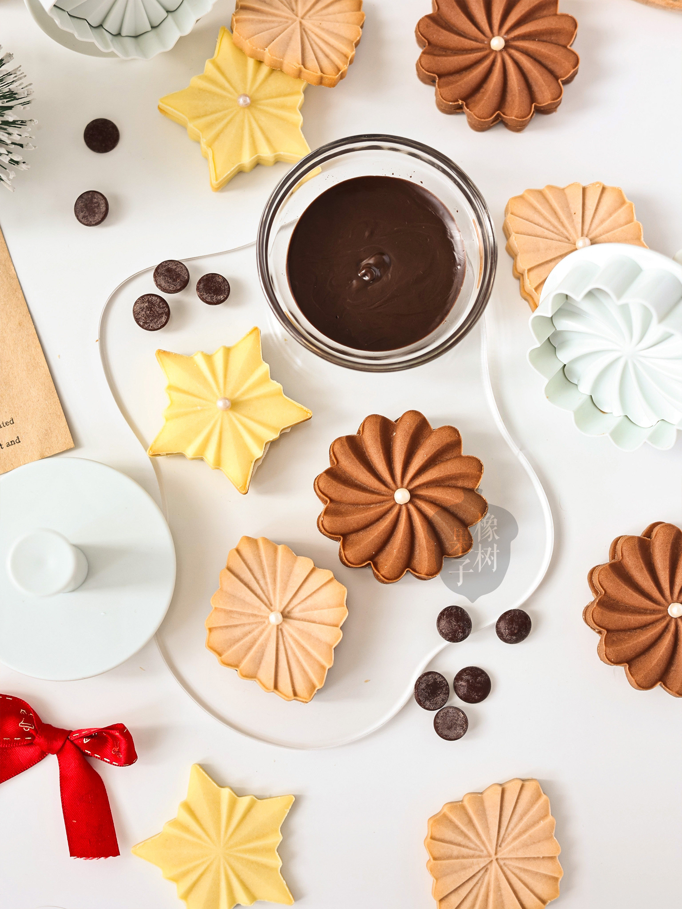 橡树果子北欧风圣诞挂坠饼干模五角星3D立体波纹圣诞节配件曲奇模