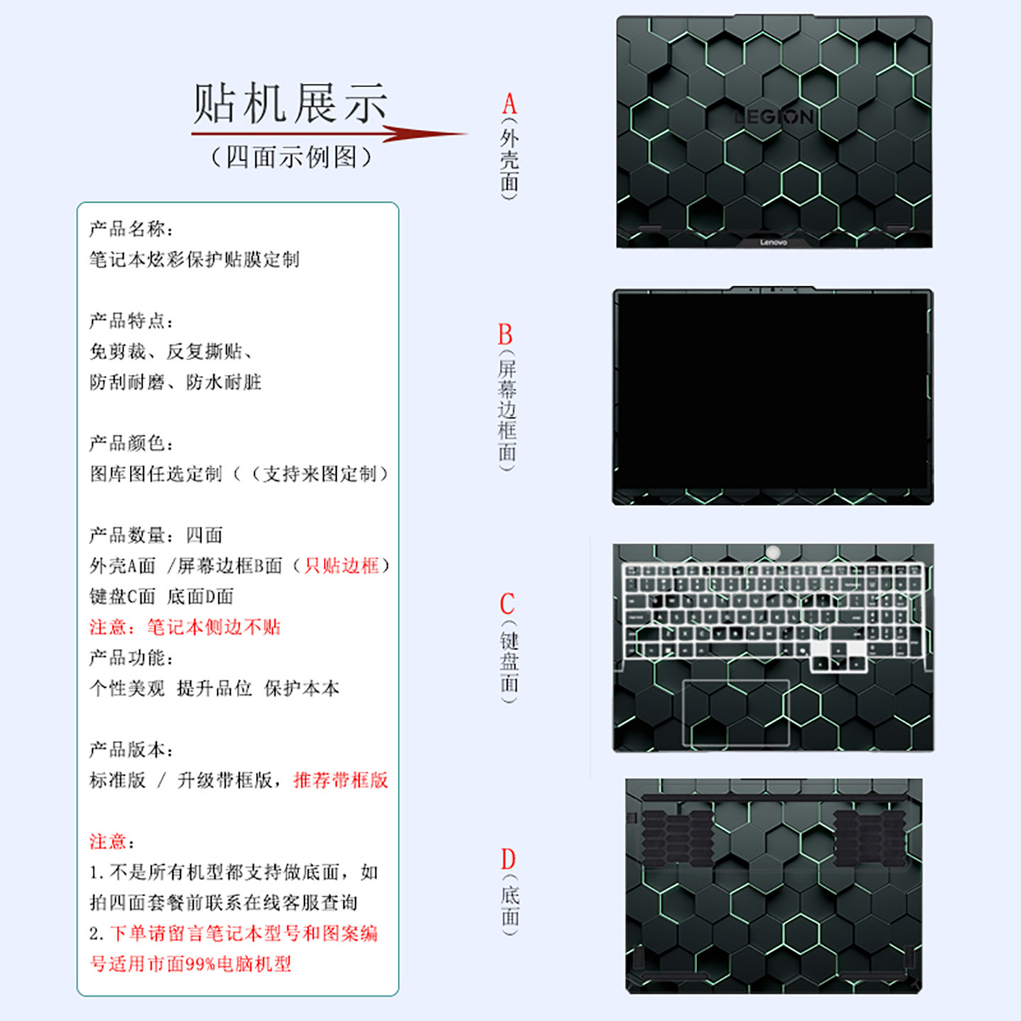 笔记本电脑贴膜适用于联想拯救者Y9000X Y7000P R9000P R7000贴纸