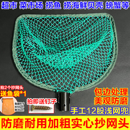 2025新款加厚实心抄网头单网头包边防磨网头超市捞鱼捞基围虾贝类