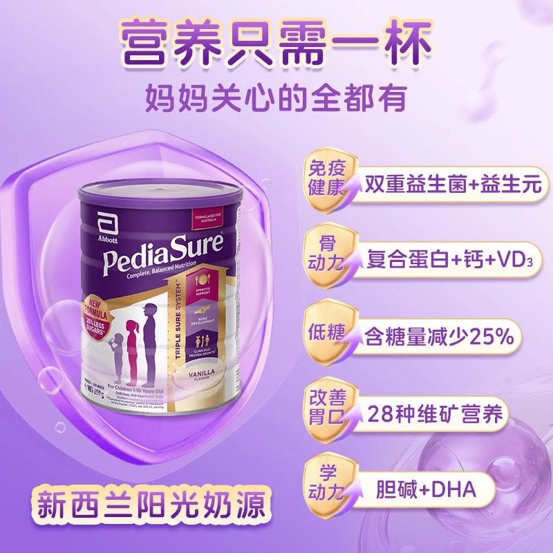 【自营】Abbott澳洲雅培小安素儿童奶粉减糖香草味*2罐26.8月到期