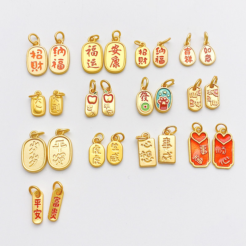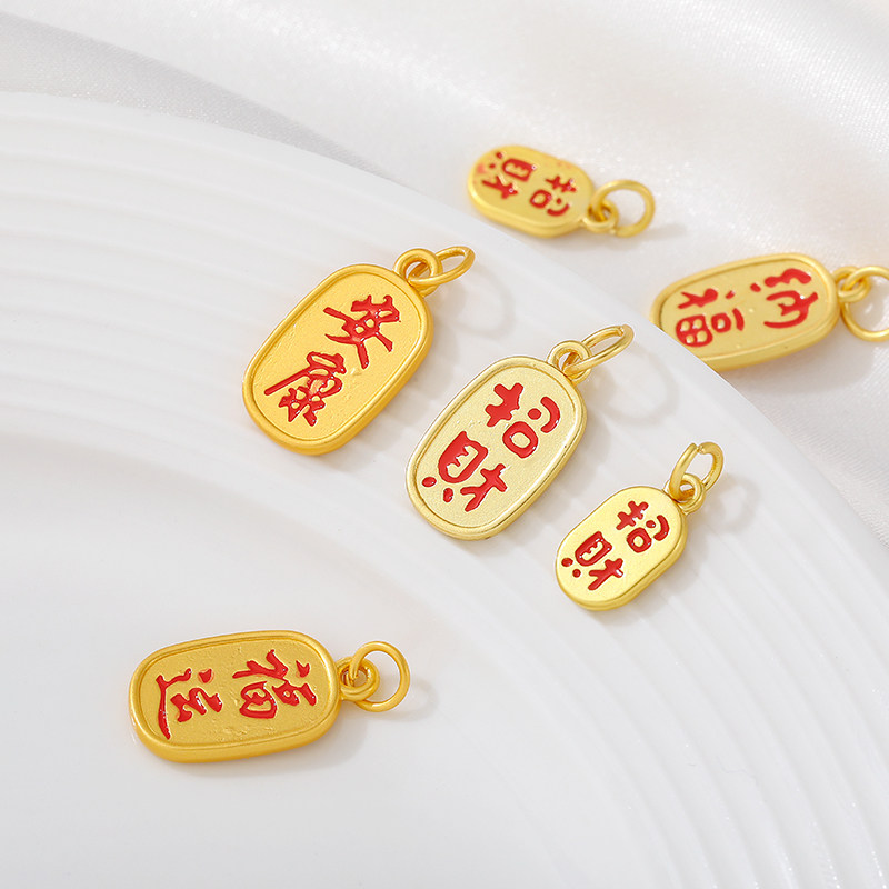 古法金滴油福字吊坠招财纳福字牌挂件手工diy手链项链首饰品配件