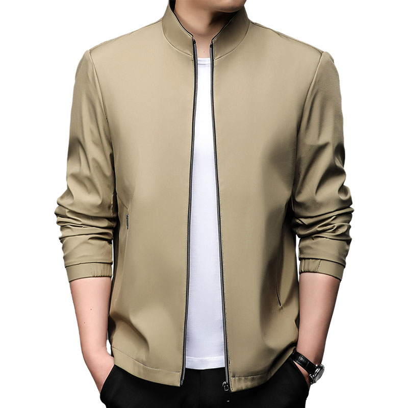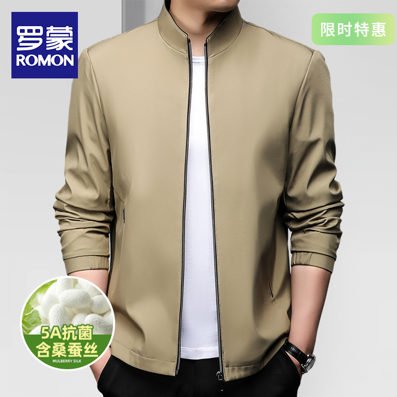 罗蒙立领春秋季休闲男士外套开衫五防桑蚕丝男士商务行者夹克上衣