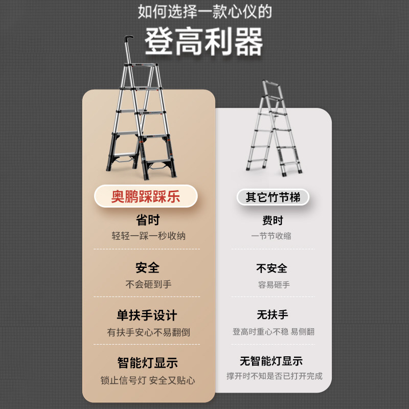 奥鹏踩踩乐梯子家用折叠伸缩式室内多功能加厚小楼梯铝合金人字梯