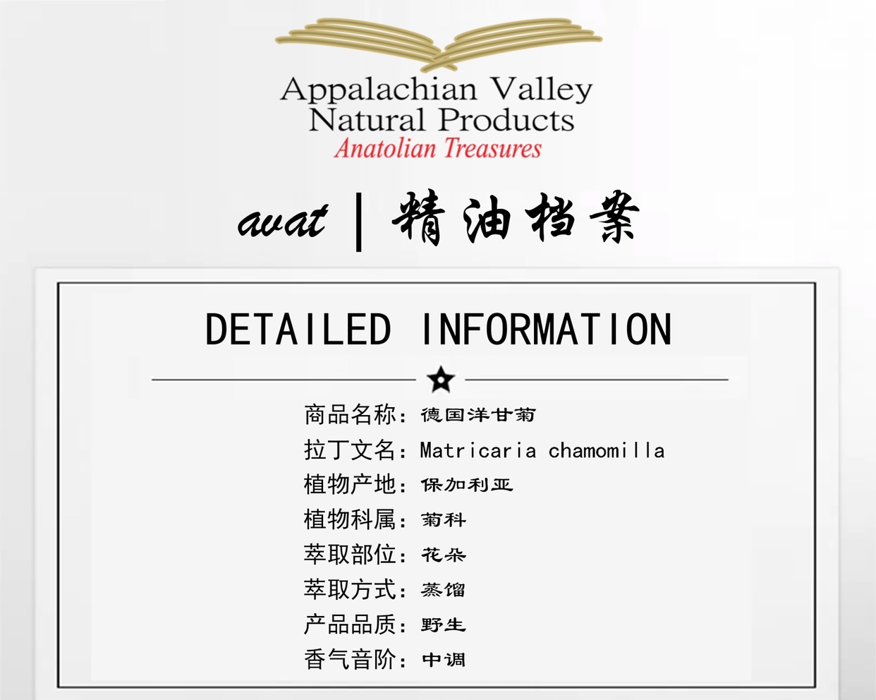 美国AVAT德国洋甘菊母菊单方精油 蓝甘菊芳疗香薰香水调香面
