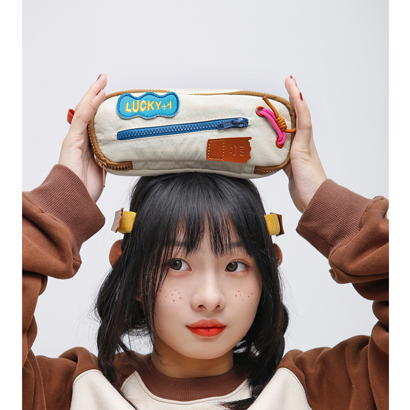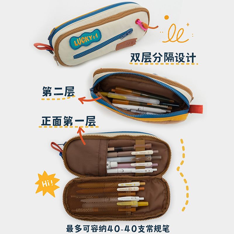 若素良品新款小可爱撞色大容量学生笔袋多功能双层文具收纳包百搭