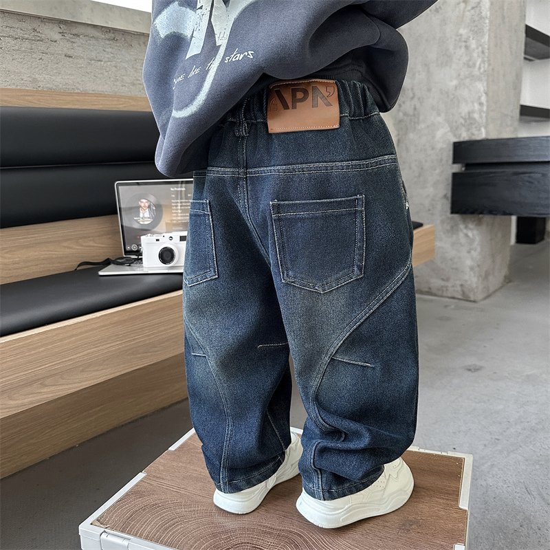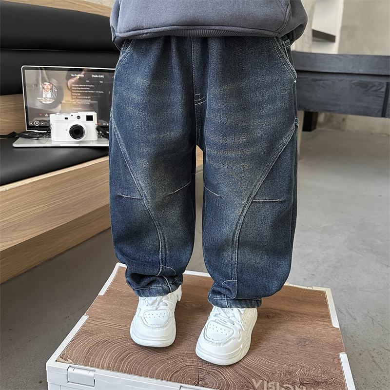 男童加绒牛仔裤冬季宝宝2025新款儿童男孩加厚一体绒秋冬款裤子潮
