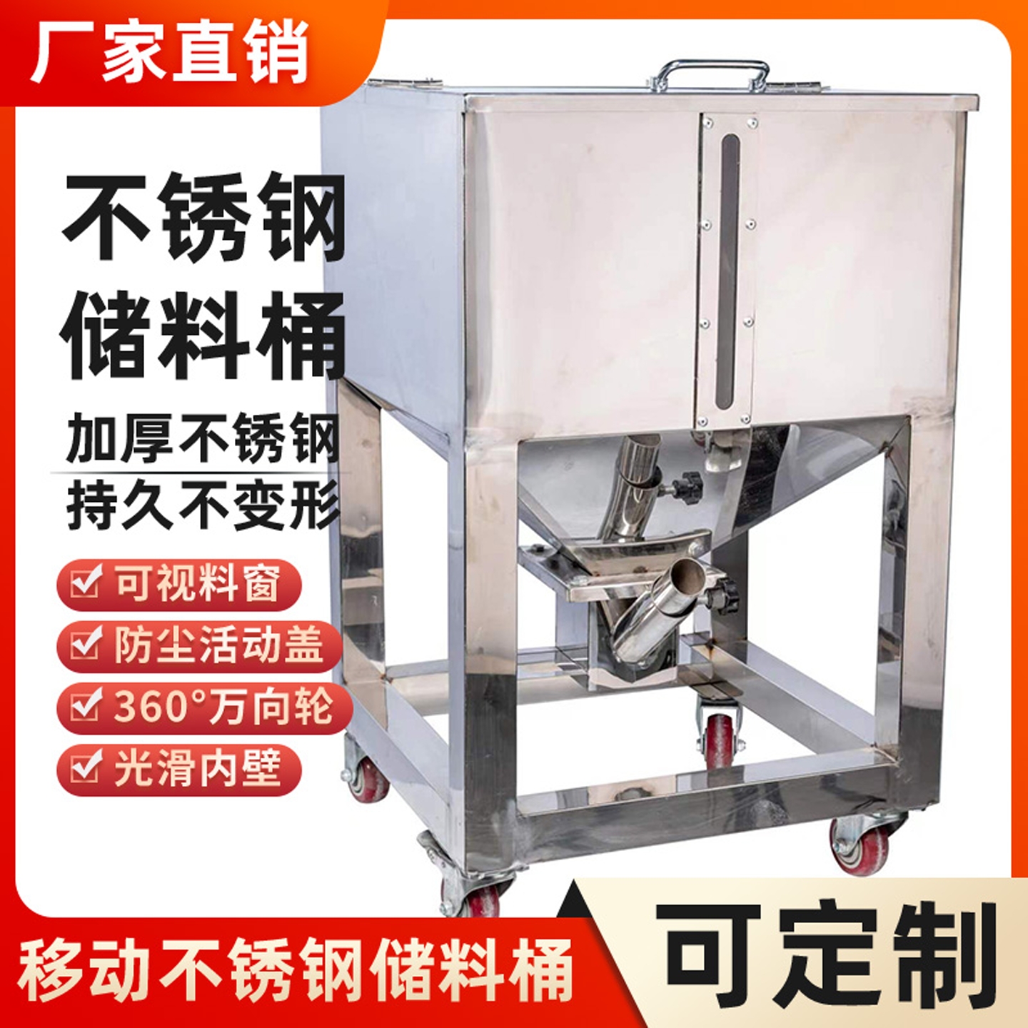 不锈钢储料桶50KG300KG可移动塑胶颗粒吸料放料盒上料周转储料箱