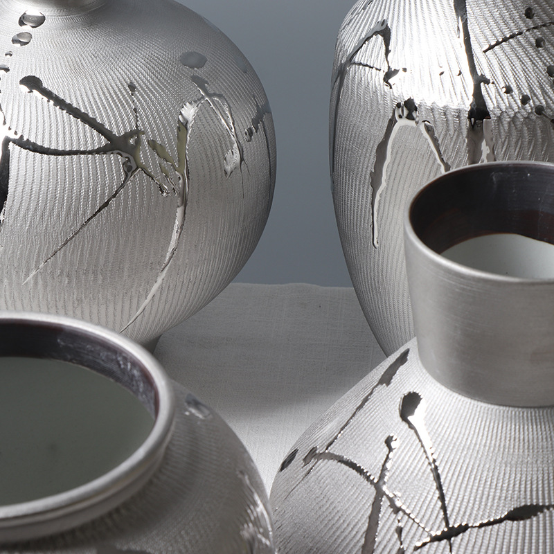 轻奢复古黑银花瓶中式美学禅意高级感插花陶瓷水培创意粗陶罐花器