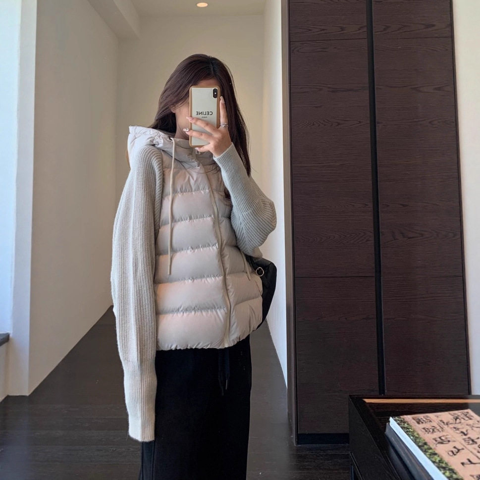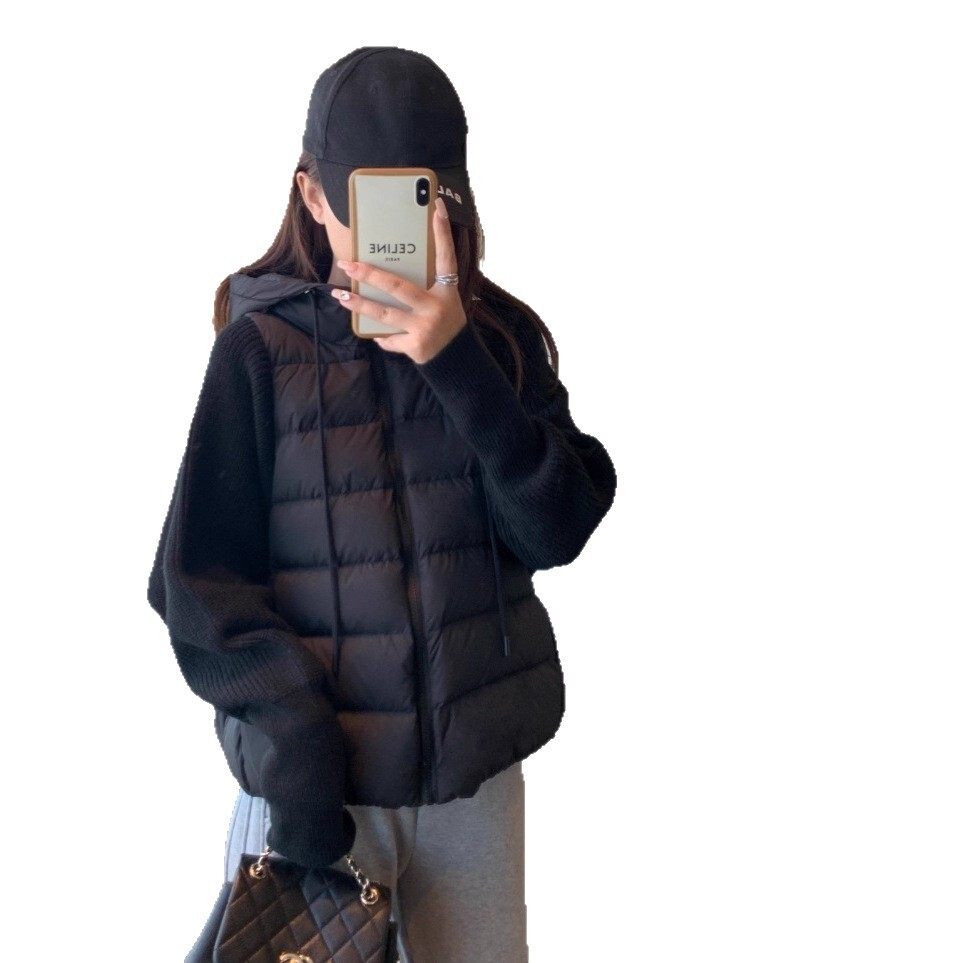 轻薄针织拼接棉服女短款冬季新款胖MM大码棉衣美拉德系冬装外套