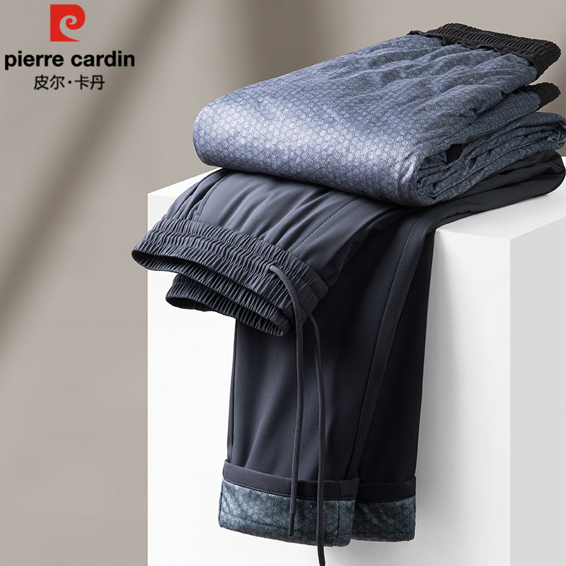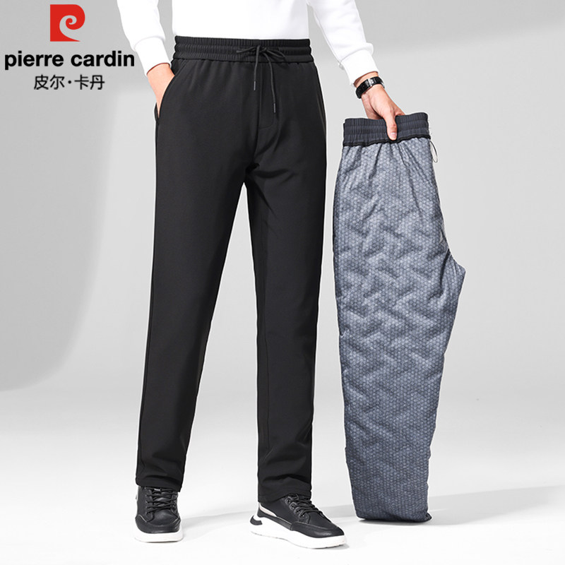皮尔卡丹羽绒裤男士休闲直筒裤加厚保暖系绳长裤时尚男装加厚裤子