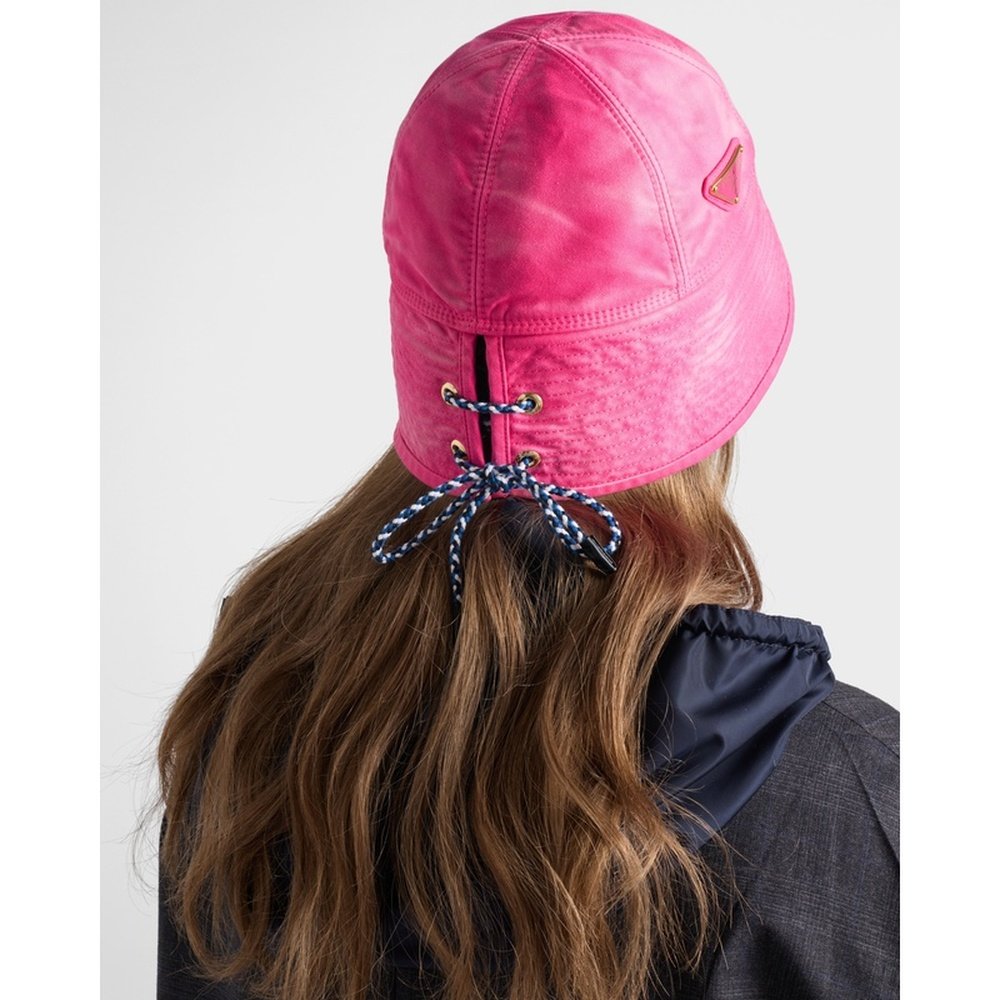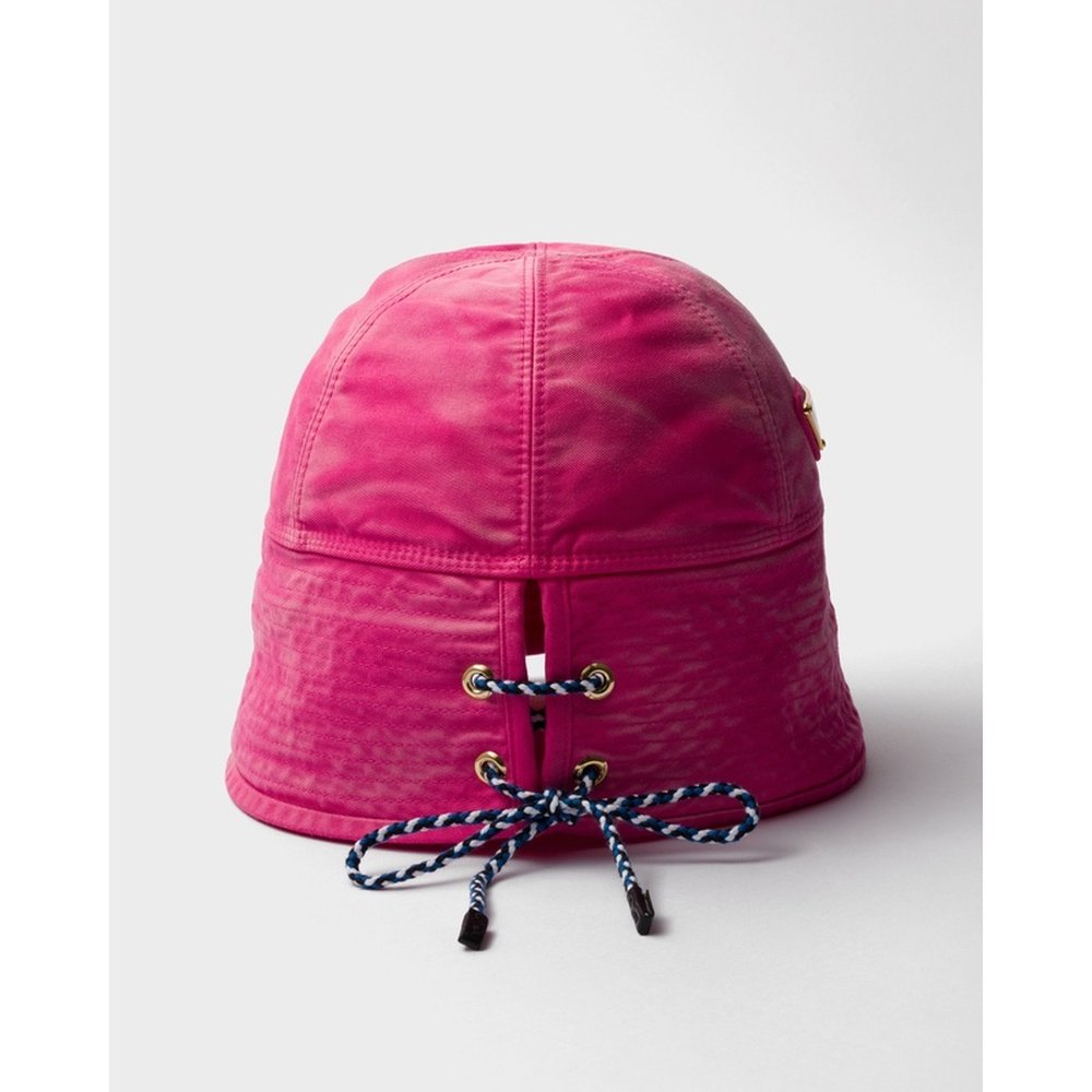 自营欧洲直邮Prada普拉达 女士狨猴粉棉金属三角标识帽子