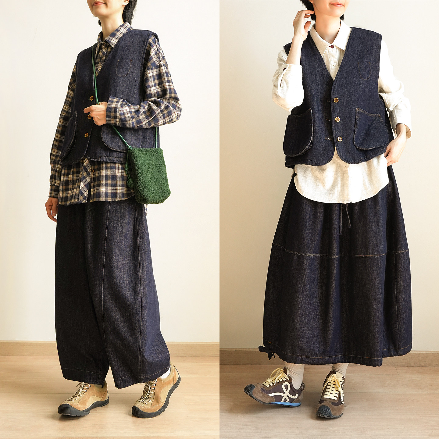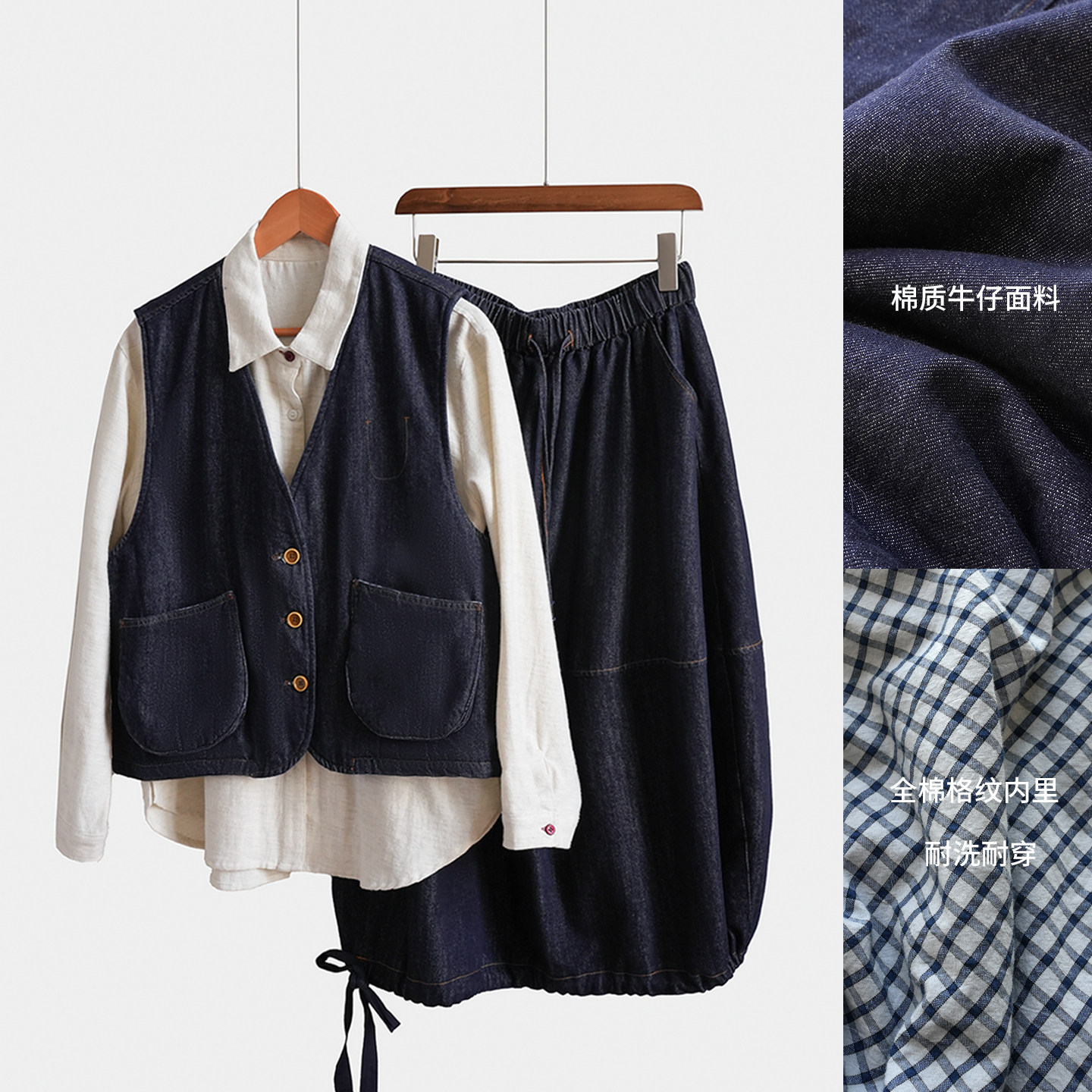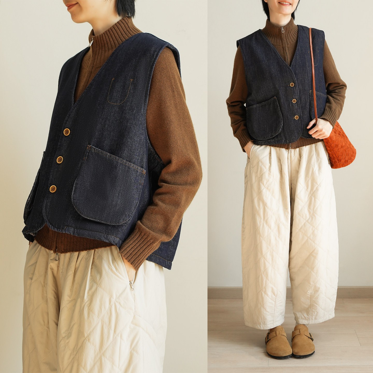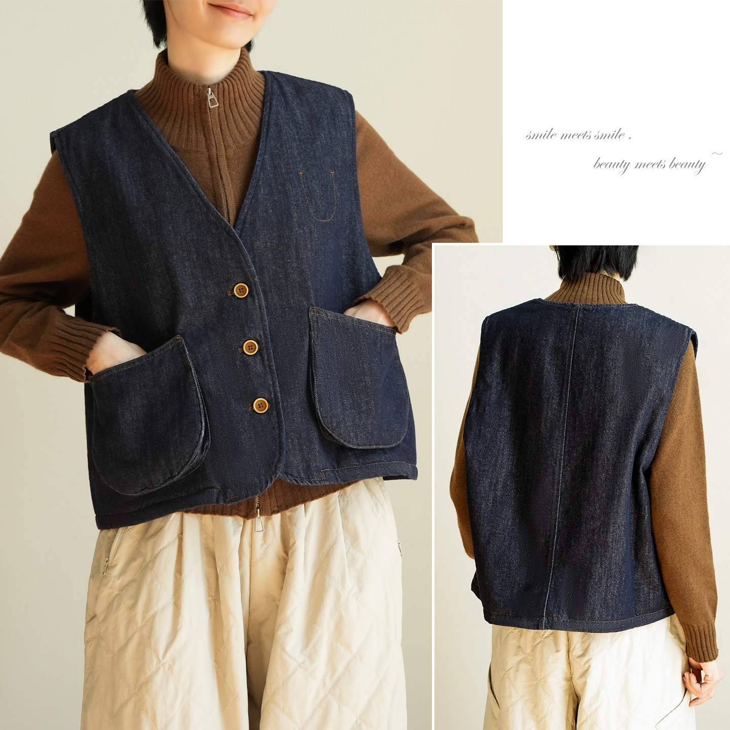 加厚保暖复古V领牛仔棉马甲 女士无袖坎肩棉质外套 冬款k