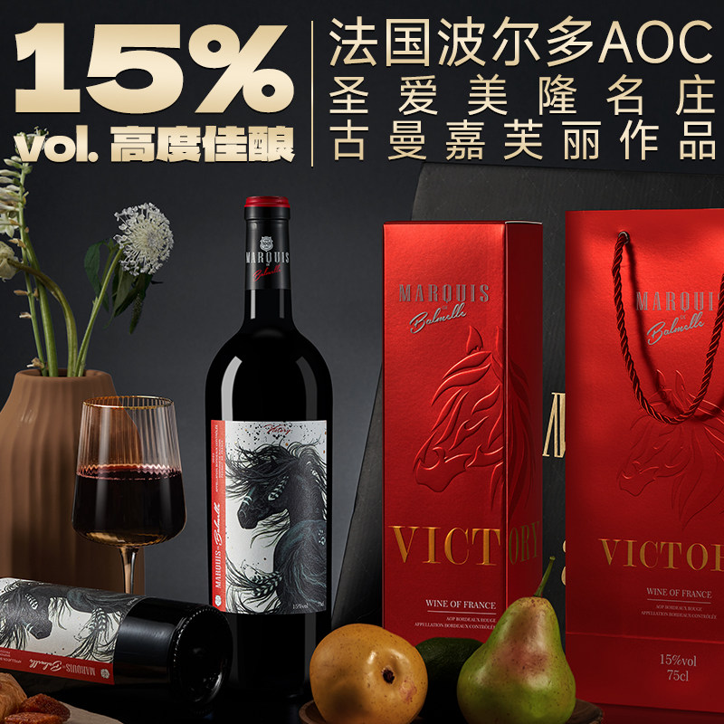 15度法国原瓶进口红酒 波尔多aoc干红葡萄酒750ml单支/整箱装6支