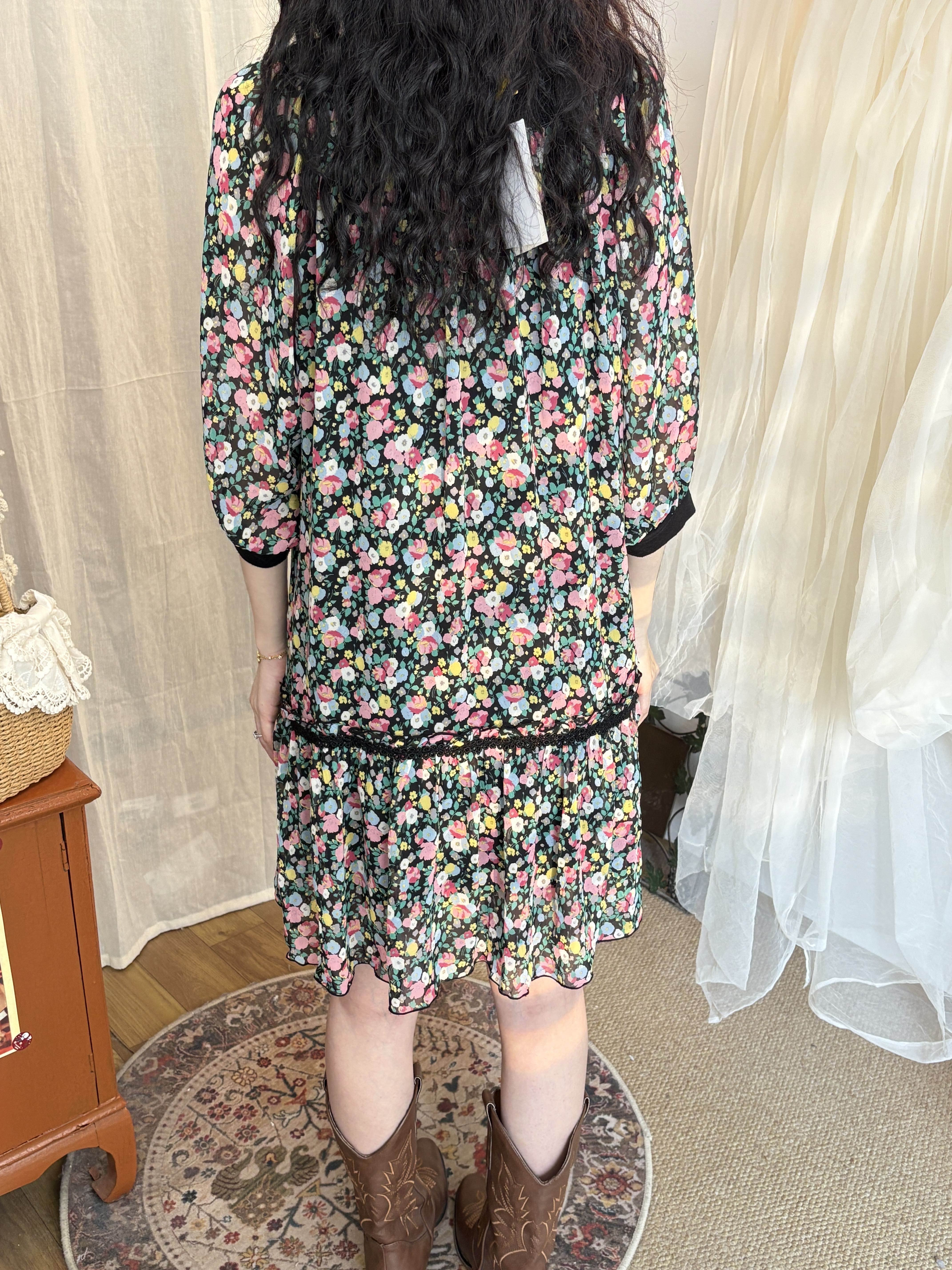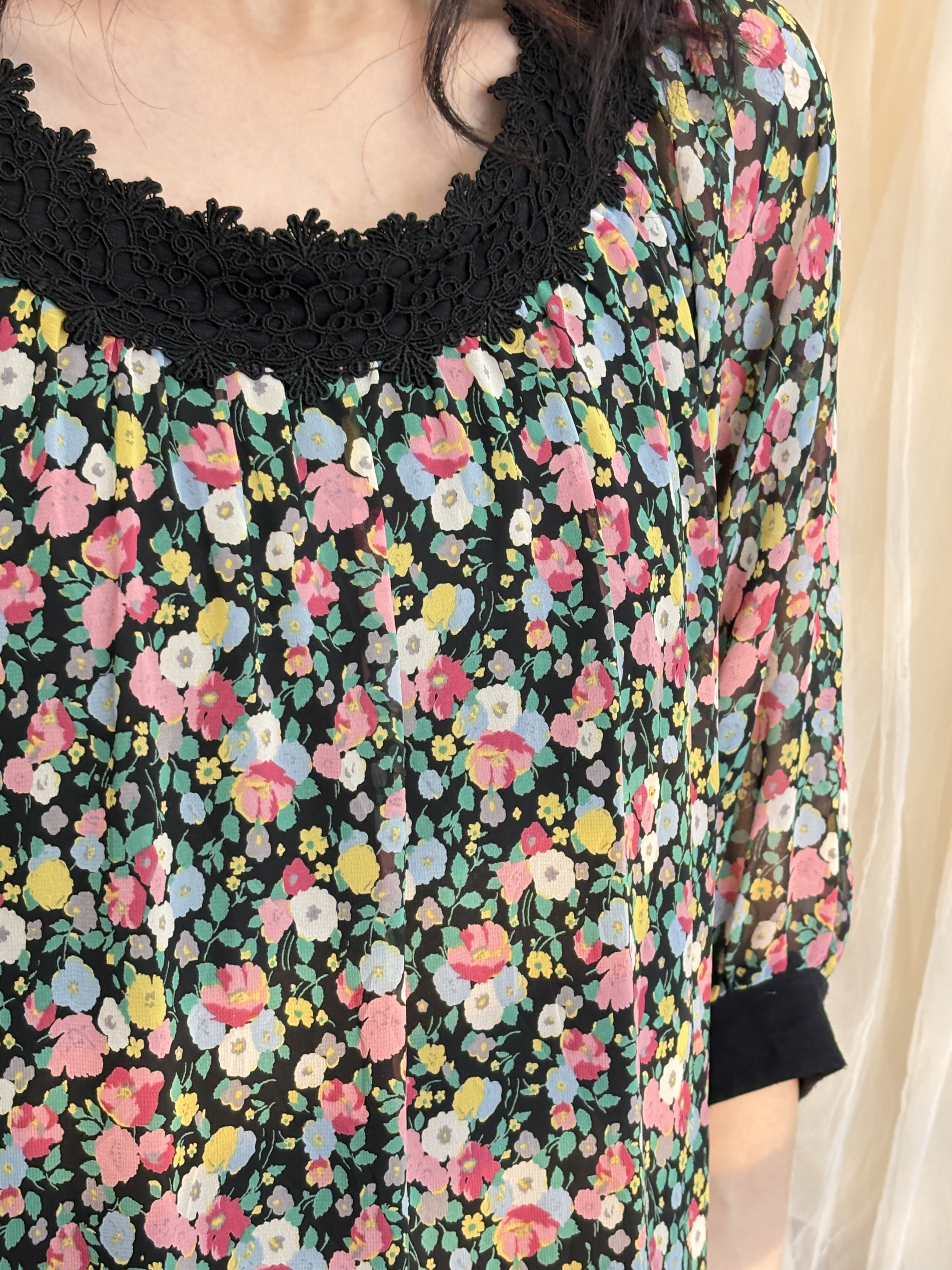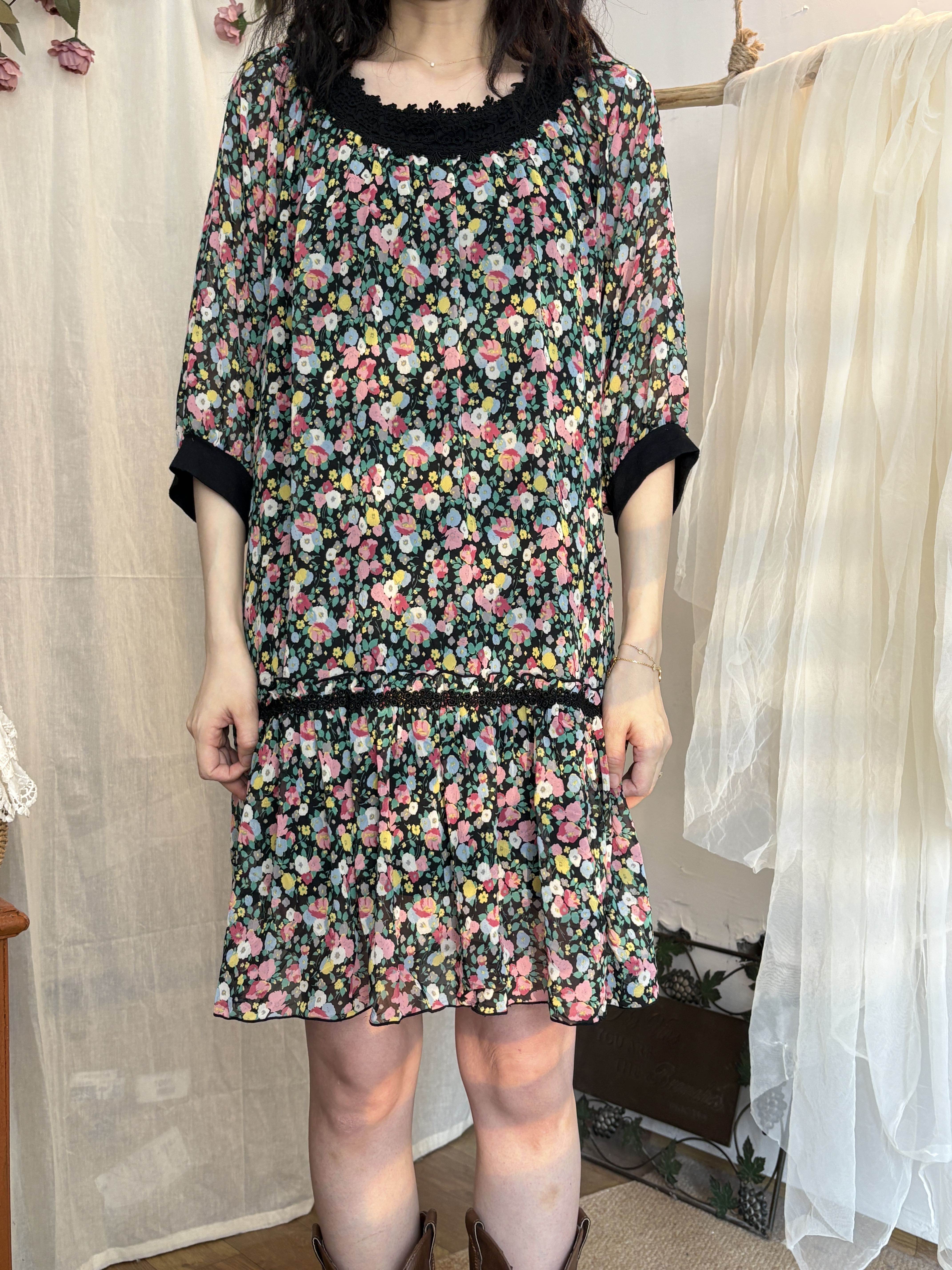 古着vintage昕薇日杂风古早感钩织碎花连衣裙
