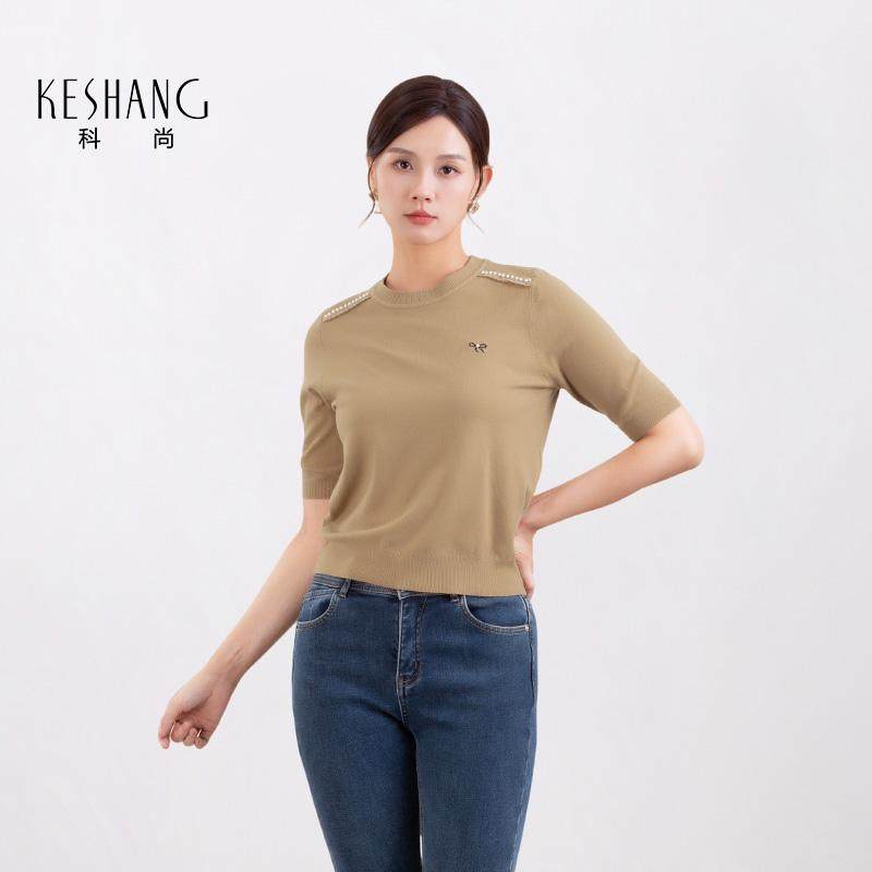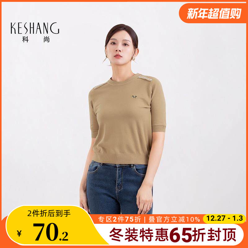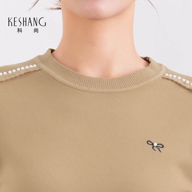 科尚圆领针织衫女2026年春季新款时尚内搭中袖套头打底衫纯色上衣