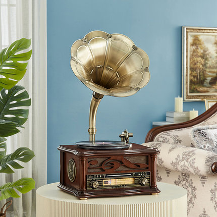 欧蒂诺台式客厅蓝牙高端木制老式复古黑胶唱片收音留声机音响摆件