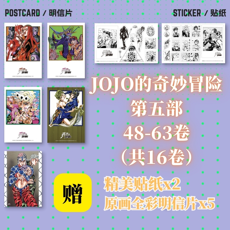 当当网【贴纸2张+原画全彩明信片5张】乔乔的奇妙冒险第五部黄金之风共16卷JOJO的奇妙冒险系列漫画书荒木飞吕彦中文简体版