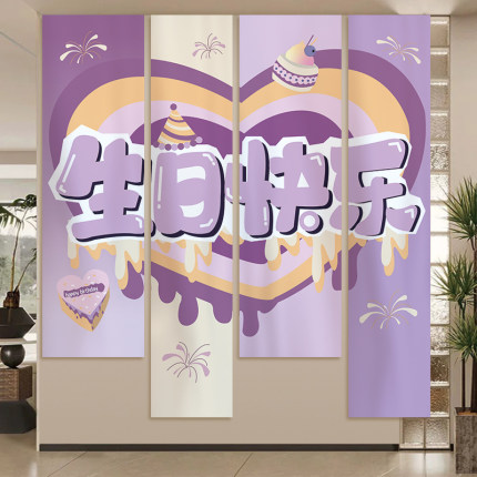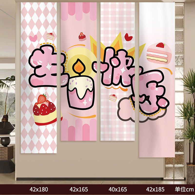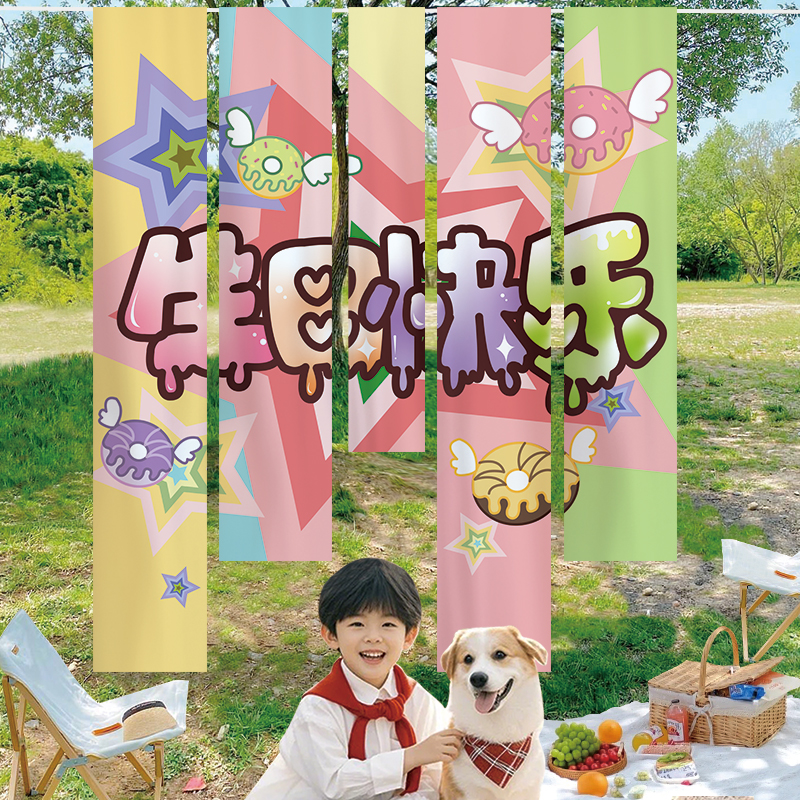 网红甜甜圈糖果蛋糕挂布拍照背景布男女孩生日派对氛围装饰竖条幅