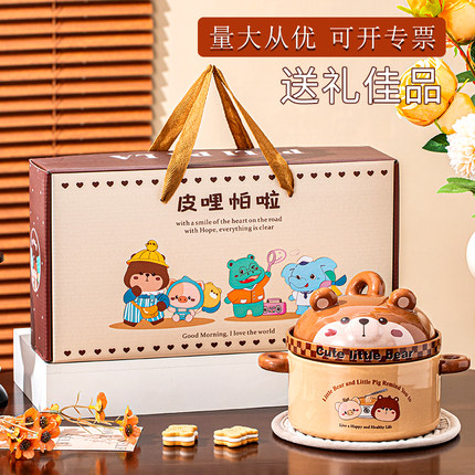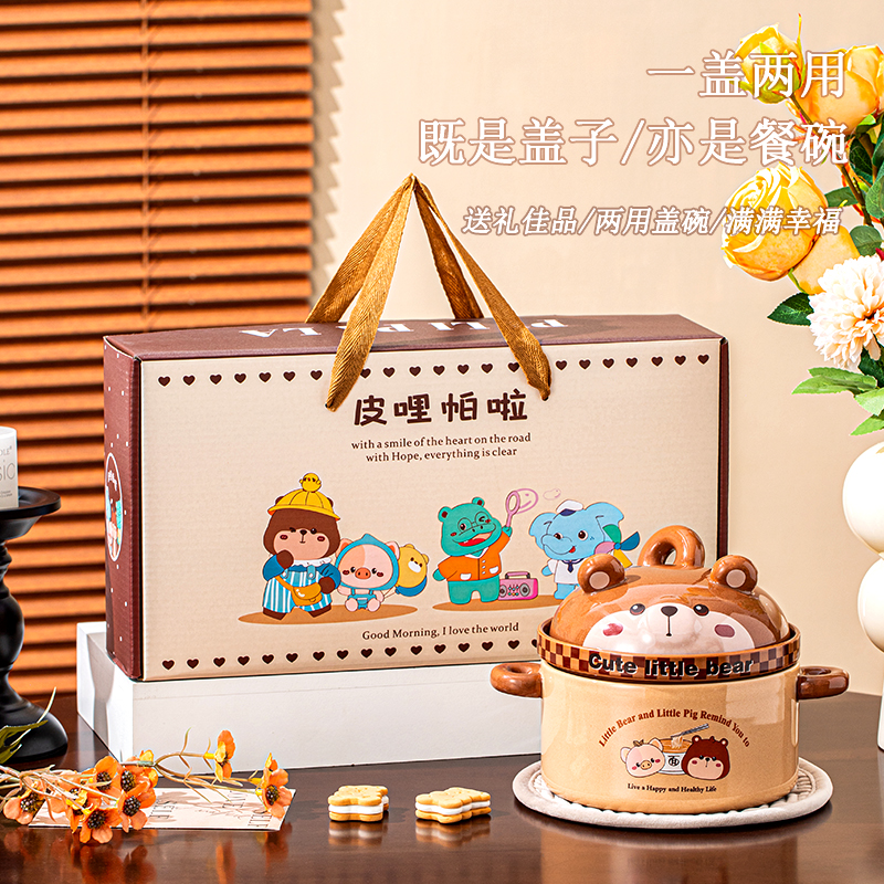 公司开业活动实用卡通碗三件套礼品定制LOGO创意伴手礼年会团建