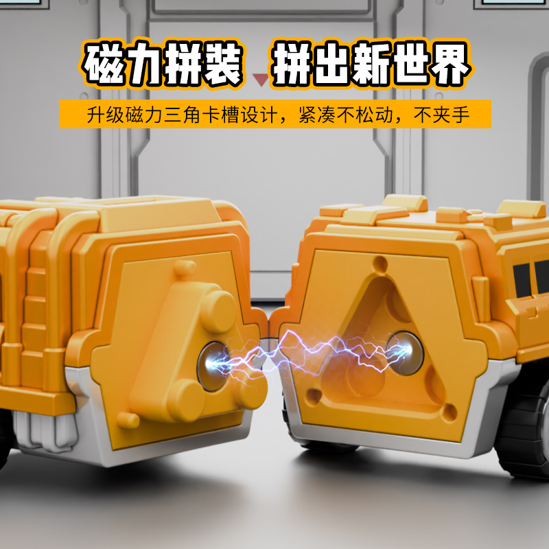 儿童变形玩具磁力拼装工程车队男