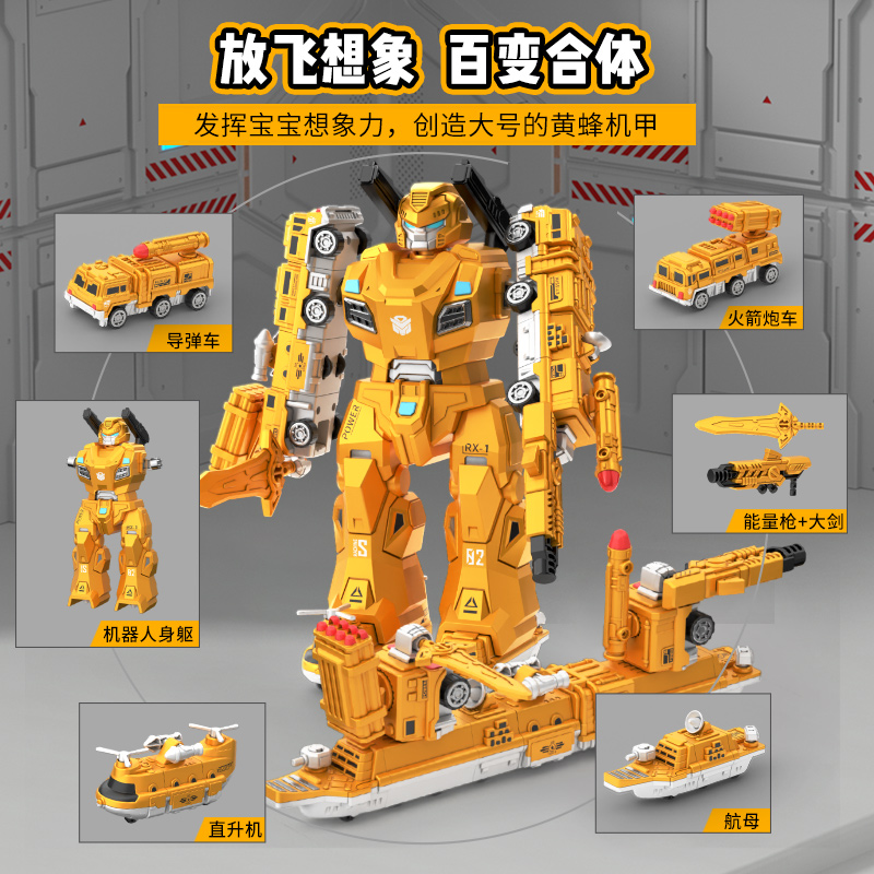 儿童玩具男孩磁力积木拼装益智工程车大黄蜂变形机器人礼物3到6岁
