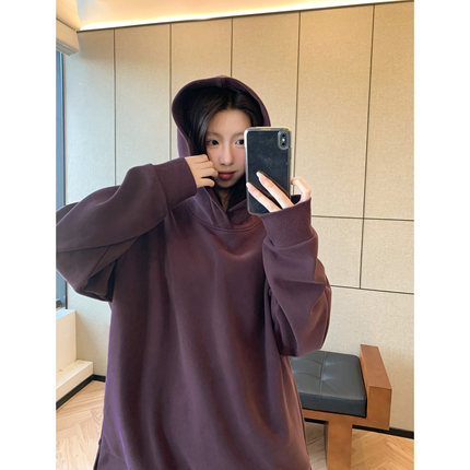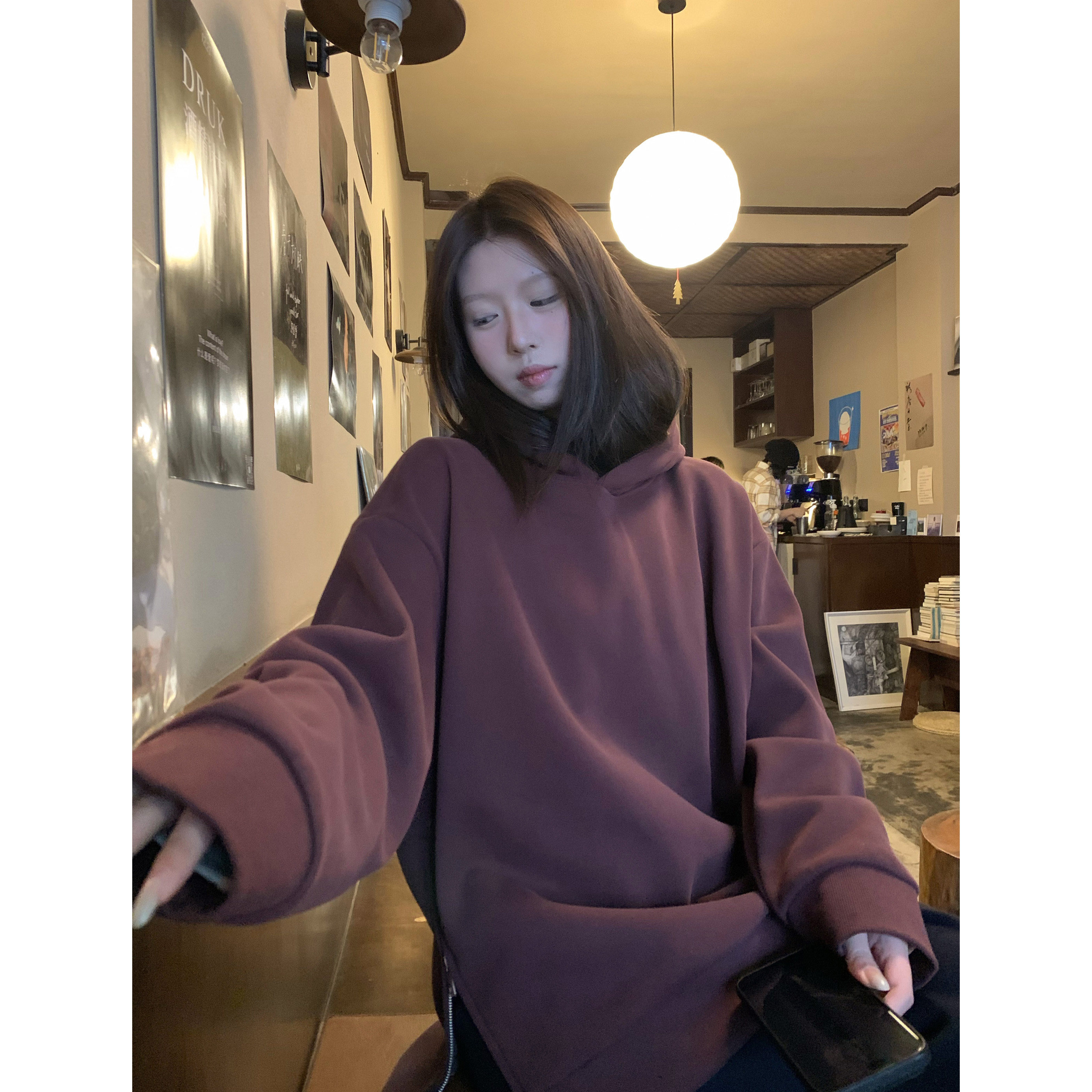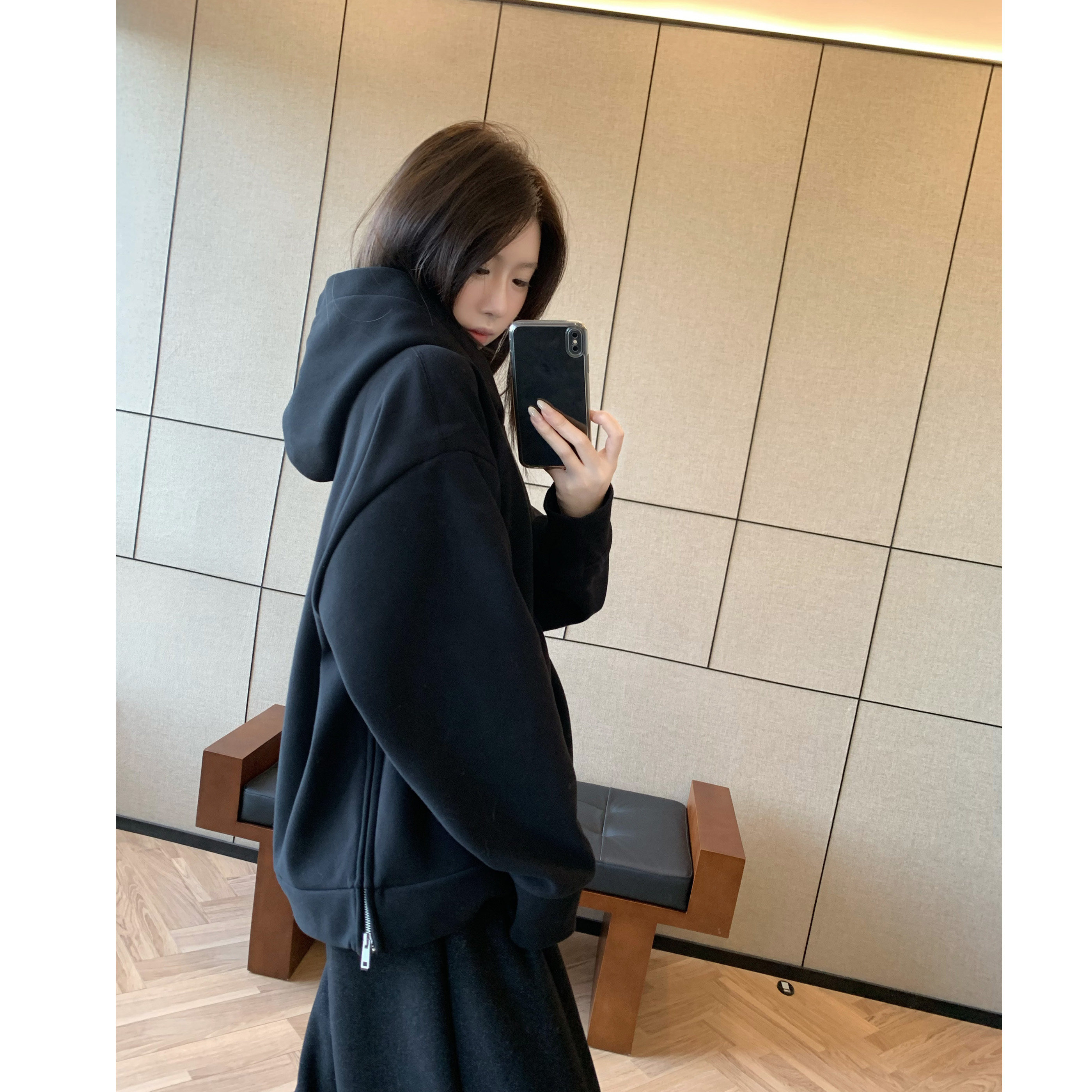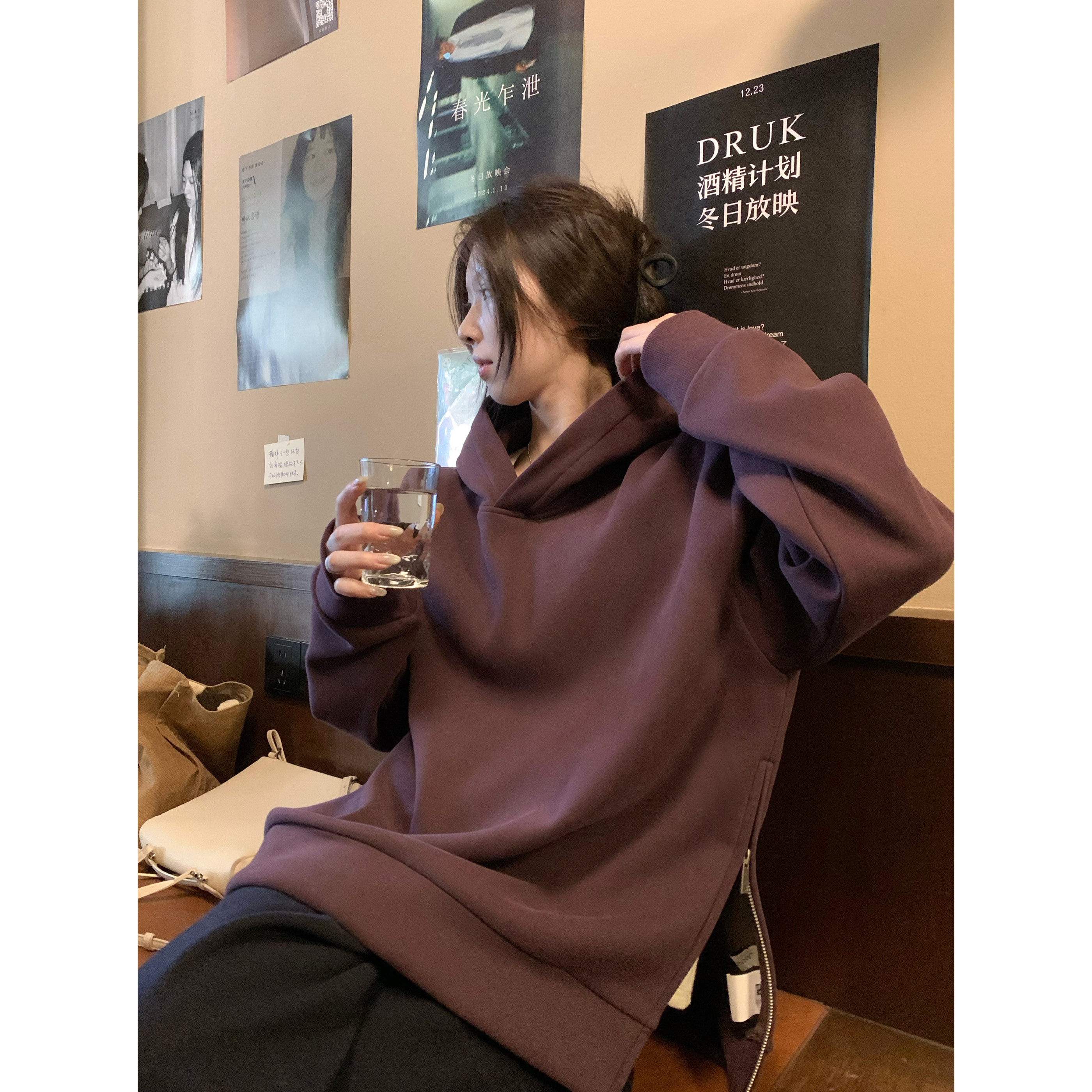 HVIVI 加绒加厚连帽卫衣女冬季拉链设计感休闲宽松套头慵懒风外套