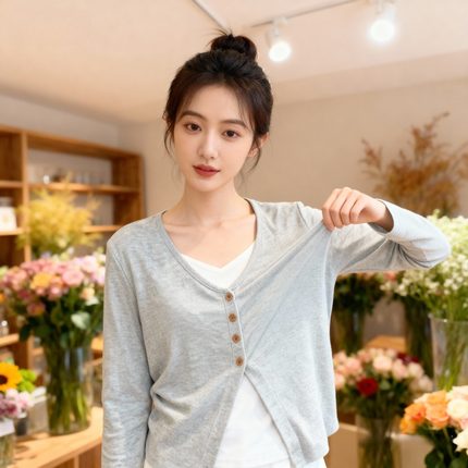 【送运费险】蓝色假两件长袖T女