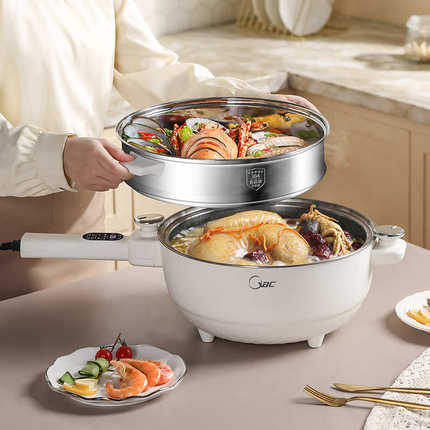 微压多功能电炒锅一体不粘锅家用炒菜不锈钢无涂层家用宿舍电蒸锅