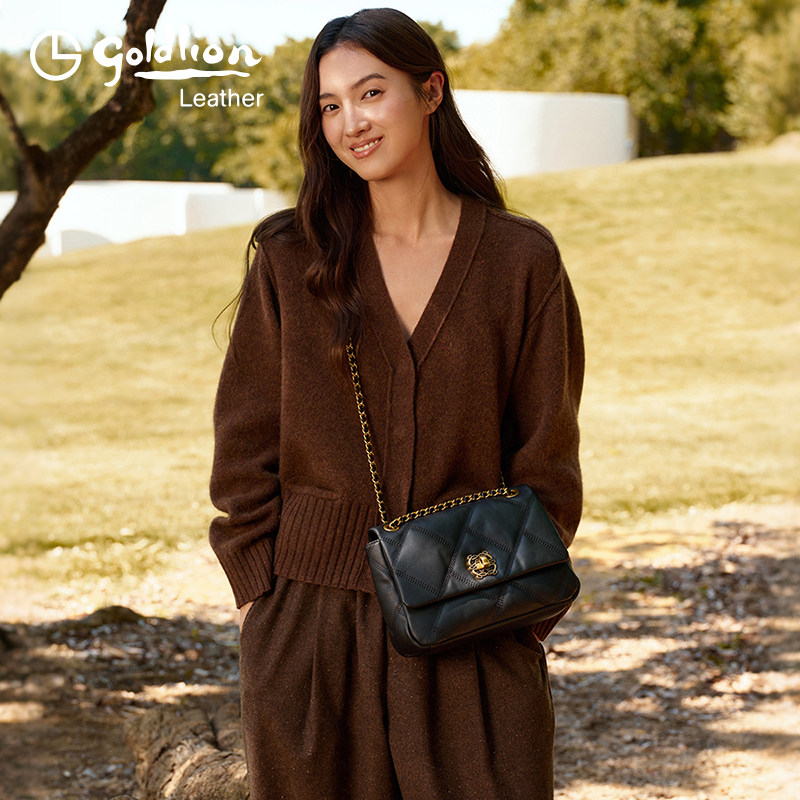 金利来2025新款轻奢真皮女包菱格小香风单肩包时尚链条斜挎小方包
