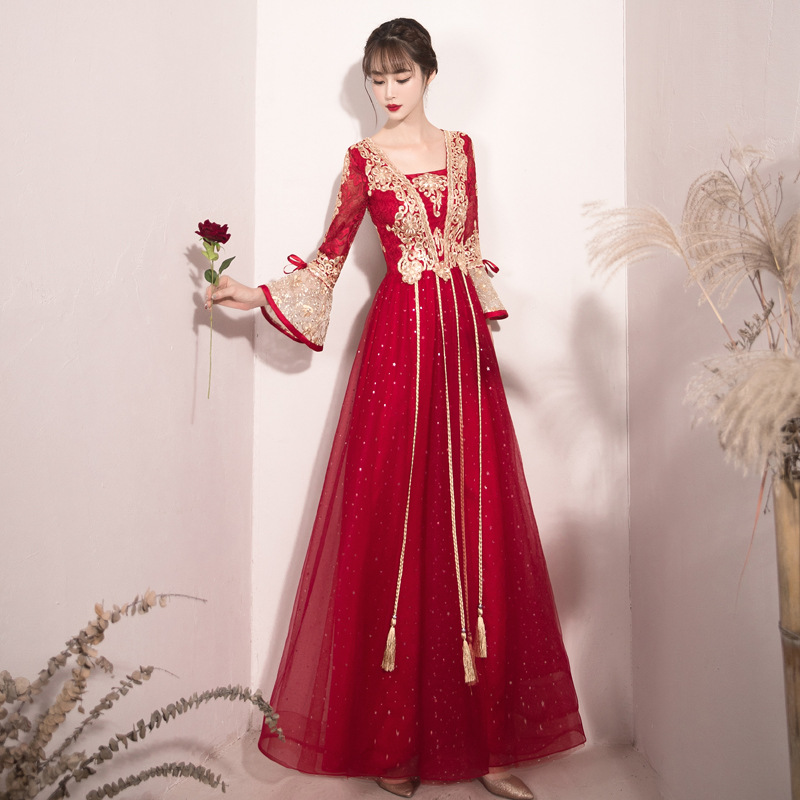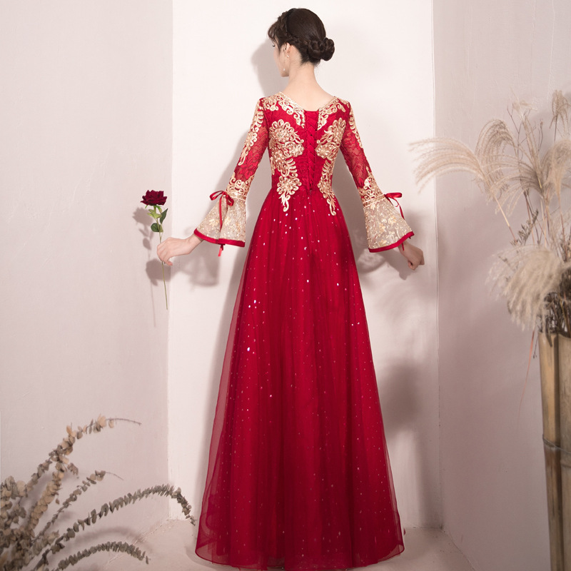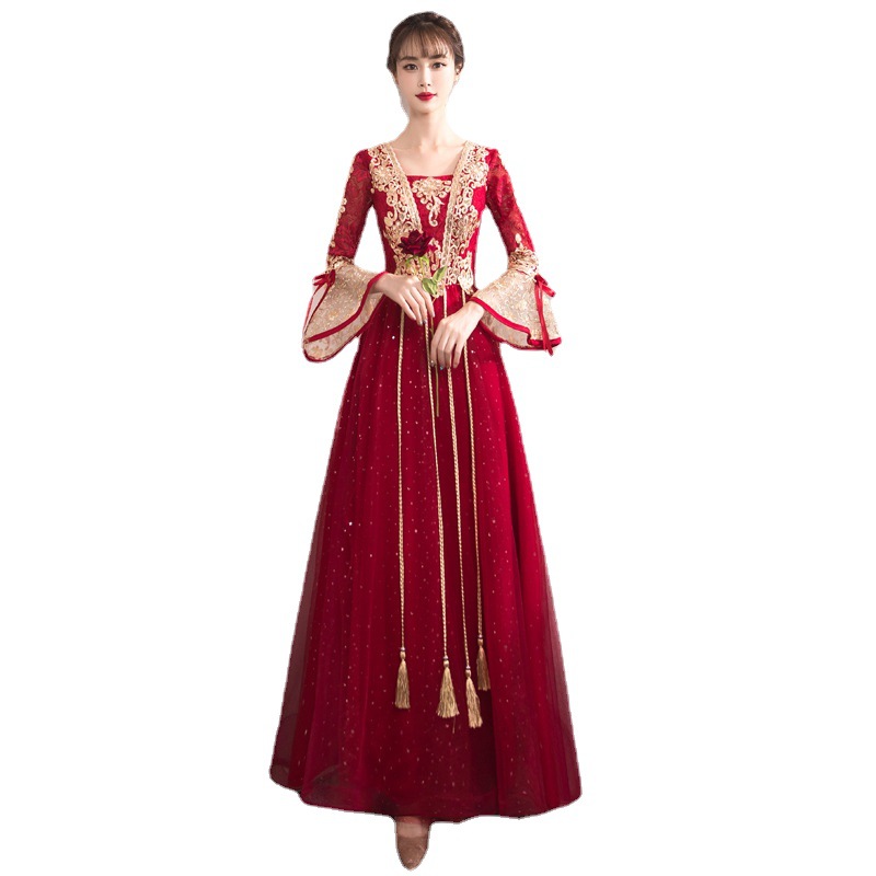 敬酒服新娘晨袍2025新款长袖显瘦小个子孕妇遮肚子红色结婚礼服女