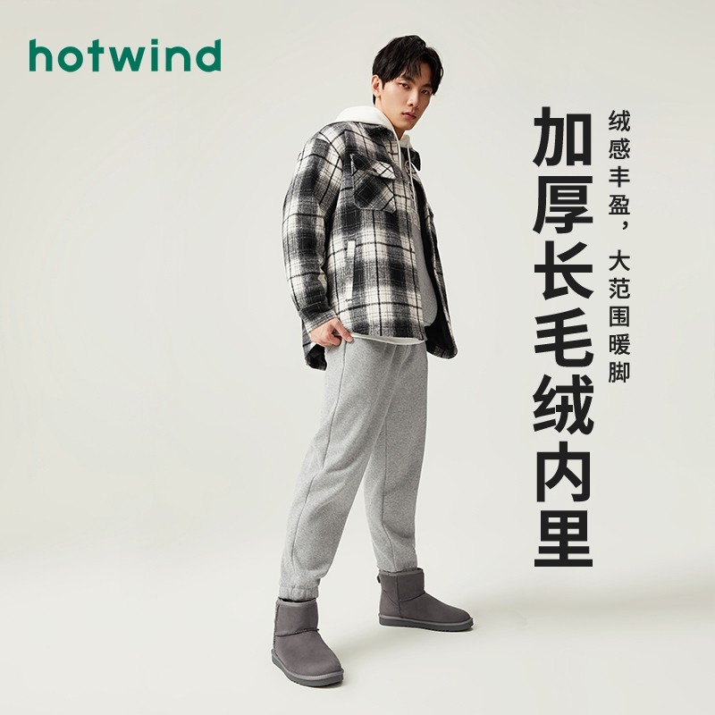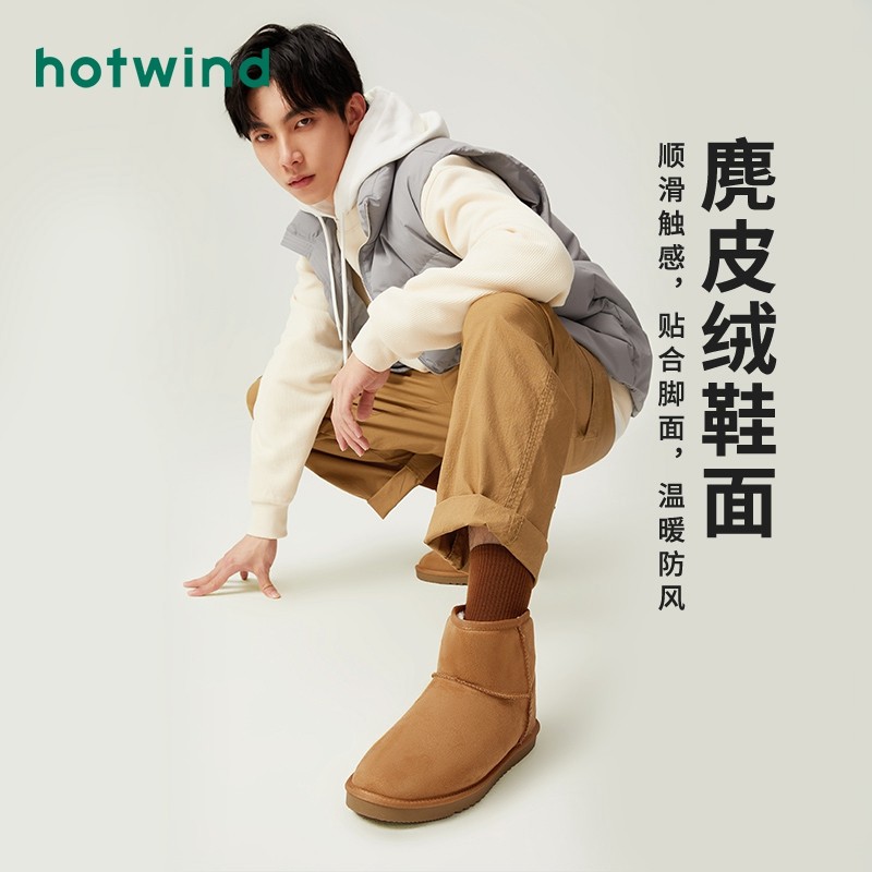 热风男鞋雪地靴冬季新款男士时尚雪地靴加绒加厚保暖经典款短筒靴
