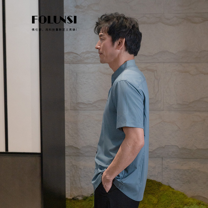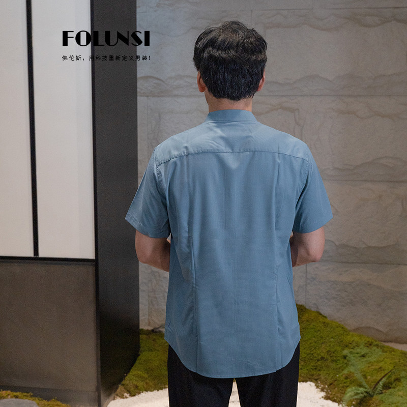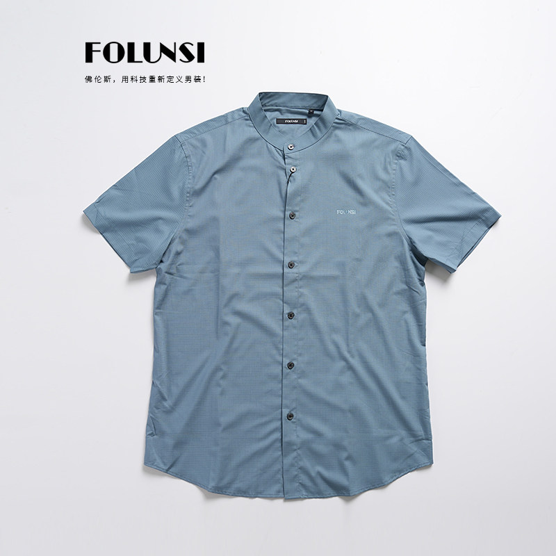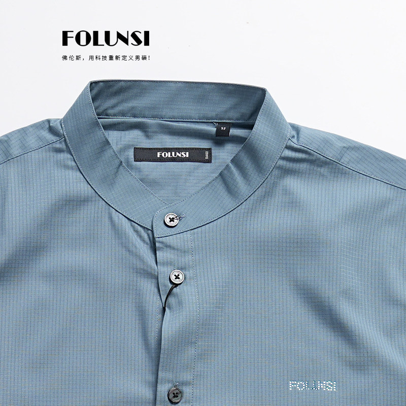 佛伦斯FOLUNSI男衬衣春夏款男士休闲中式立领休闲短袖衬衫男