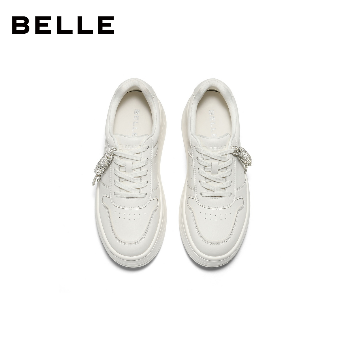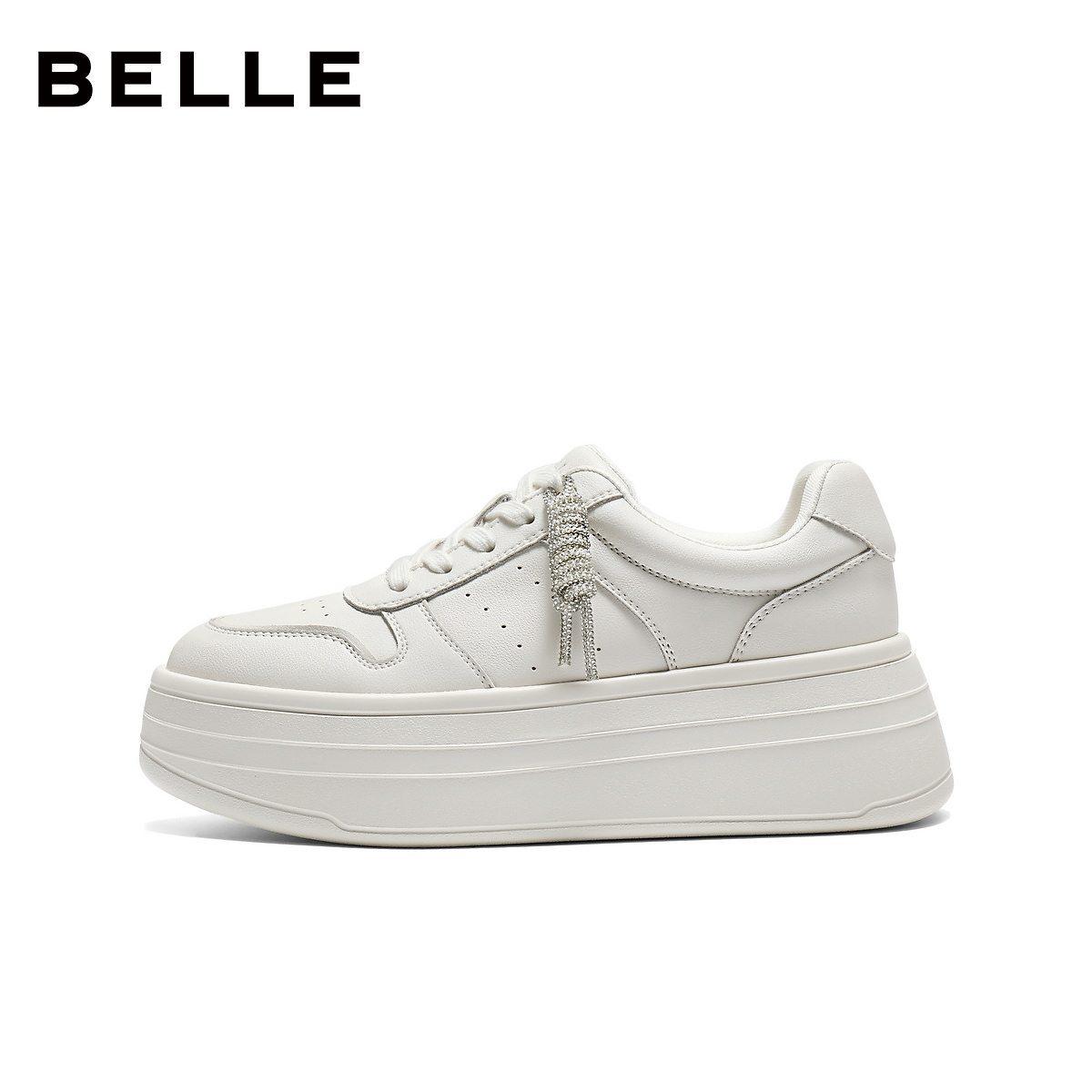 百丽女鞋简约厚底小白鞋免系带新款面包鞋增高休闲板鞋F1V1DAM6