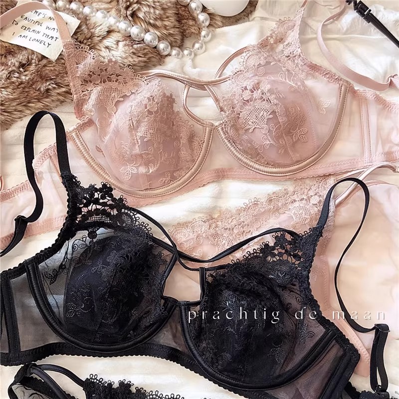 法式性感蕾丝内衣女兔耳软钢圈聚拢大胸显小收副乳防下垂文胸套装