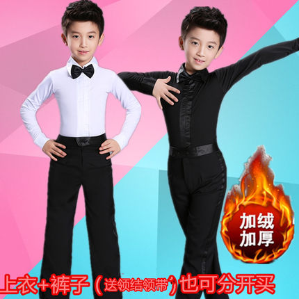 秋冬男童拉丁舞服新款儿童演出服考级服装少儿标准比赛服加绒上衣