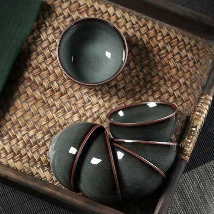青瓷功夫茶品茗杯手工主人杯单杯哥窑龙泉冰裂陶瓷茶碗盏茶具家用