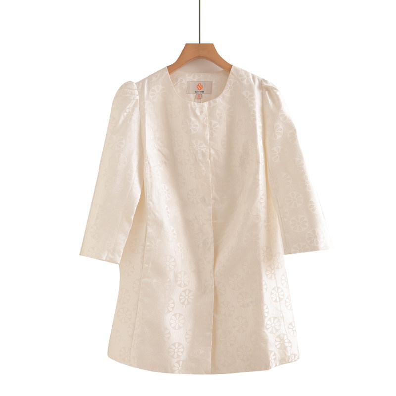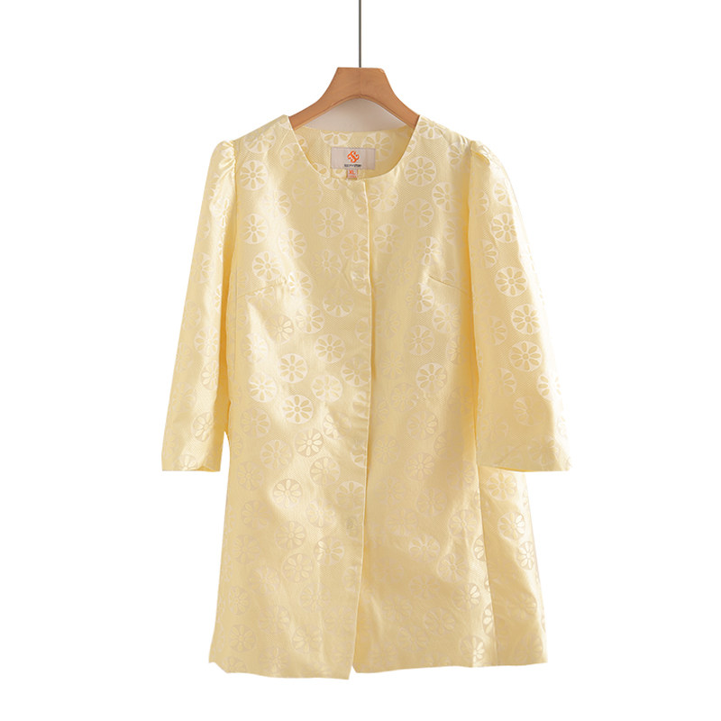 新中式国风中长款外套女春秋新款小香风暗扣提花缎面七分袖风衣