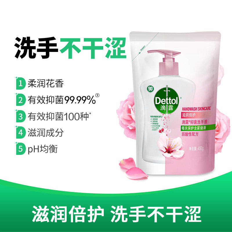 滴露洗手液补充装包邮家用清香型抑菌儿童洗手液450g*2袋非泡沫