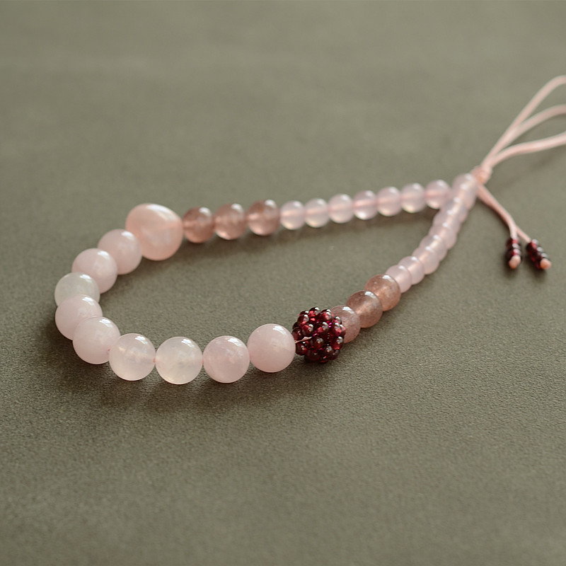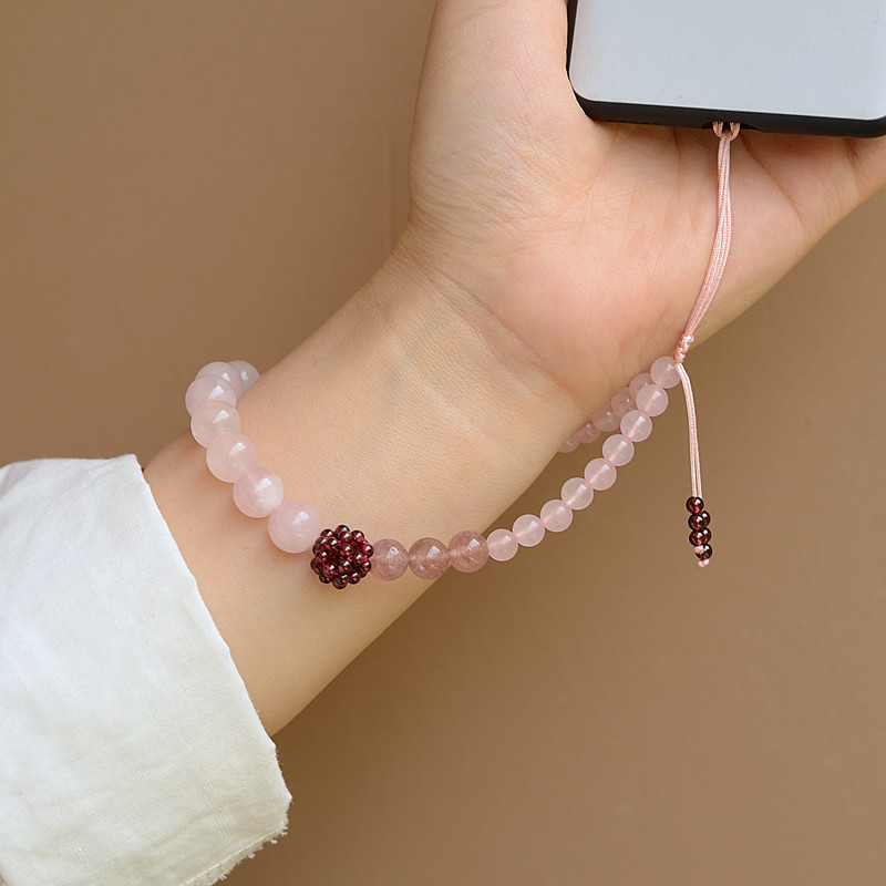 粉水晶石榴石草莓晶水晶手机挂绳女款挂件挂饰手机链手机坠防丢