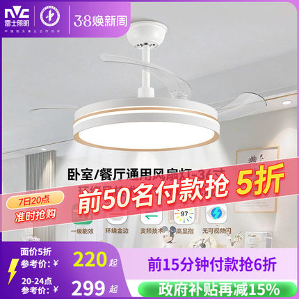 雷士照明客厅餐厅家用风扇吊灯简约现代电扇灯具隐形风扇灯吊扇灯