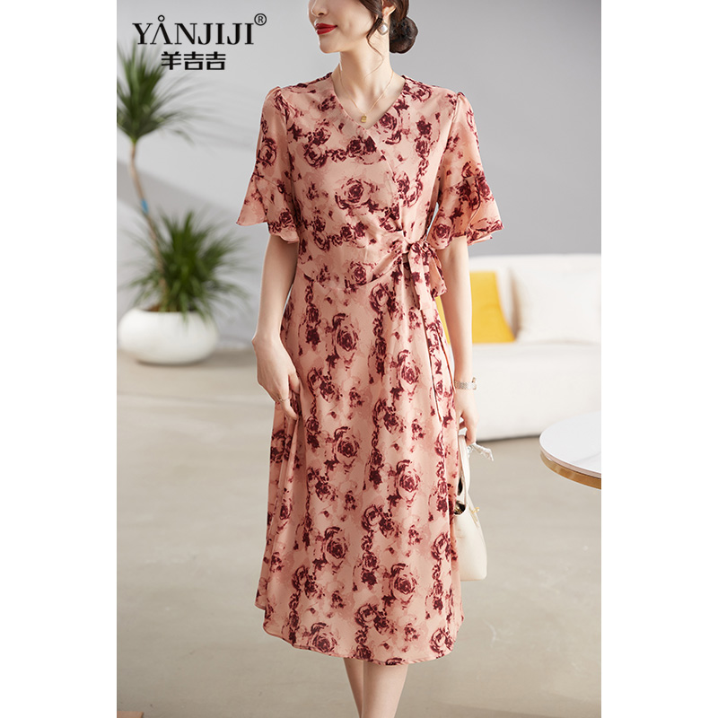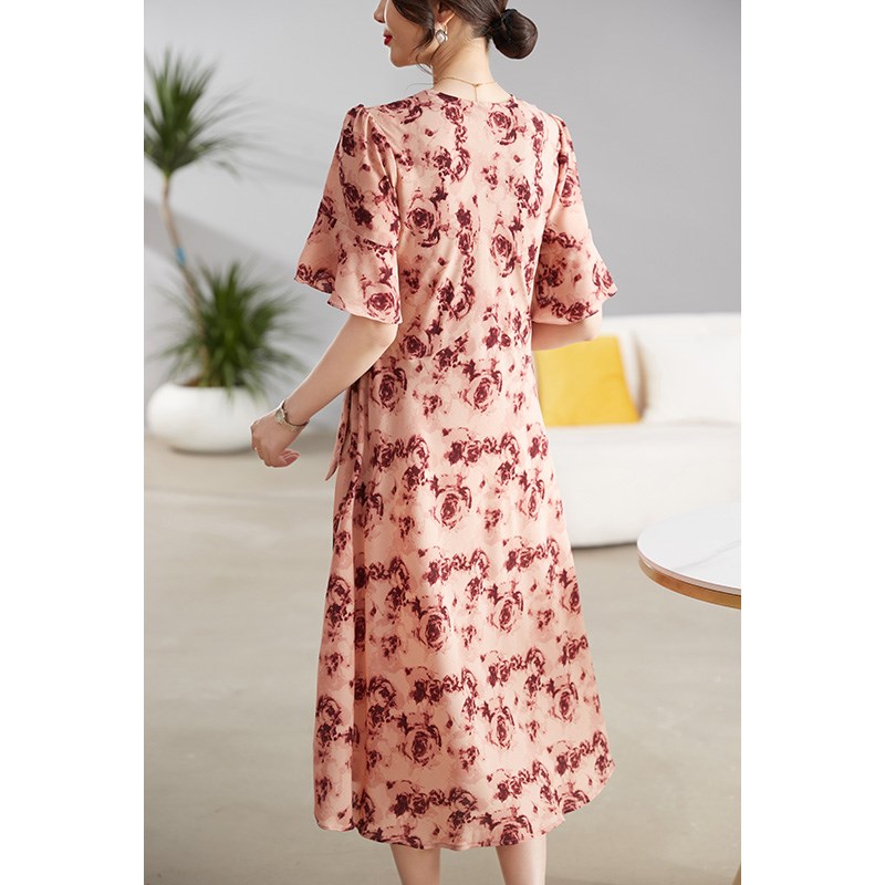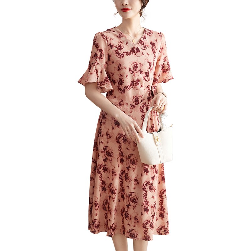 中年妈妈夏装连衣裙气质2024新款时尚高贵中老年女士夏季收腰长裙