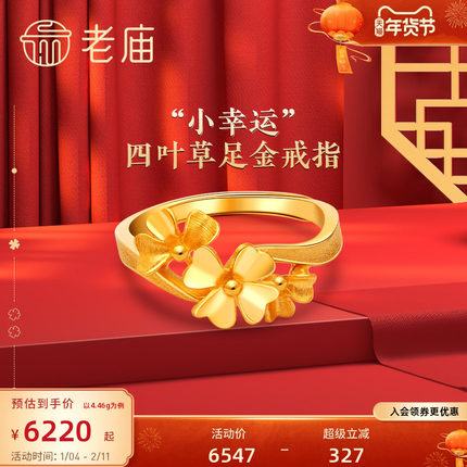 老庙黄金幸福四叶草婚嫁足金戒指手饰送礼物礼物计价正品情侣礼物