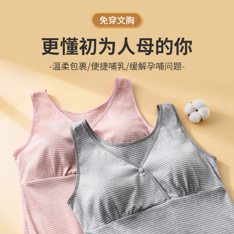哺乳吊带背心式纯棉产后喂奶专用内衣月子一体式免穿文胸春秋上衣
