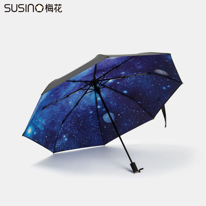 SUSINO梅花j三折黑胶伞不透光防紫外线防UV双层小黑伞遮阳伞太阳