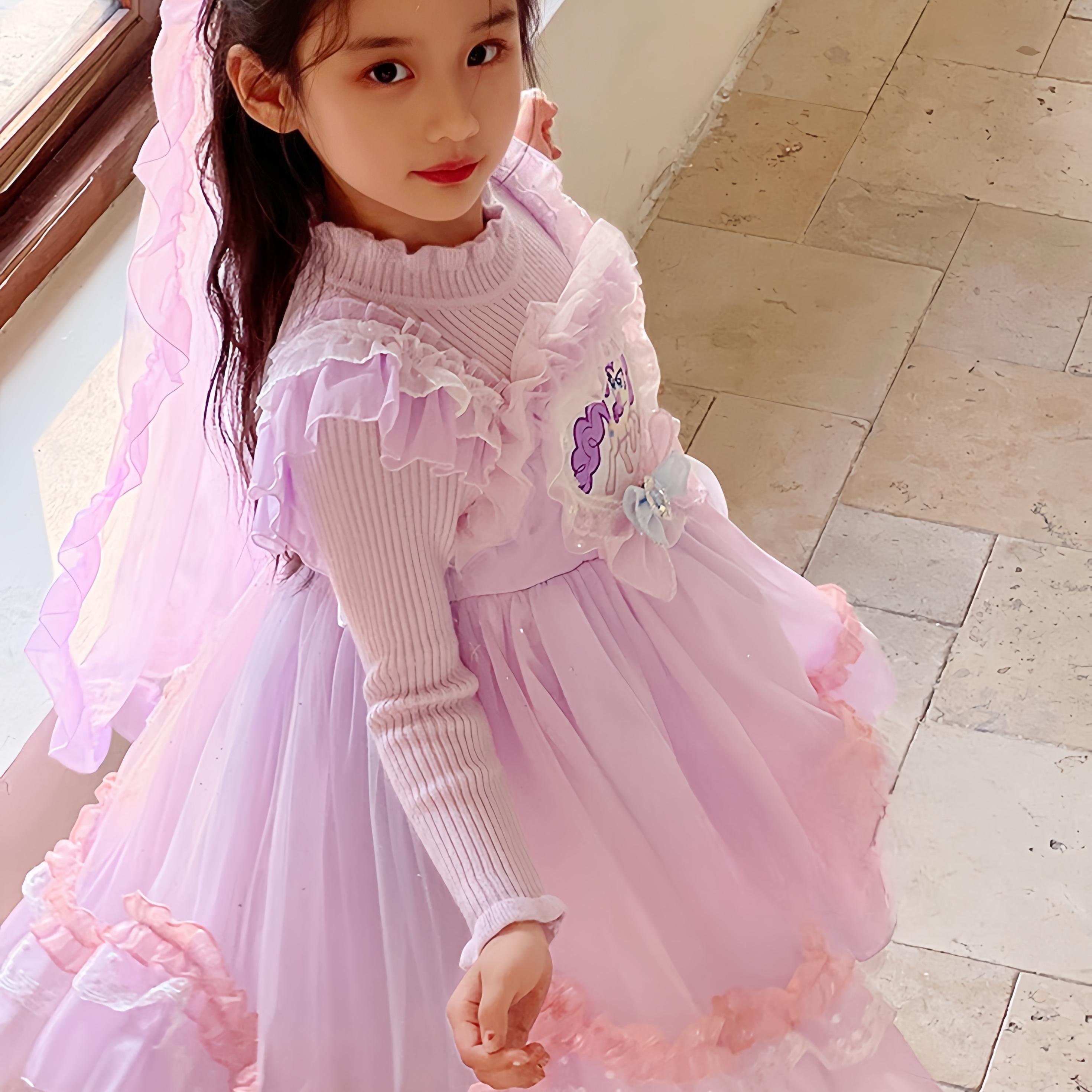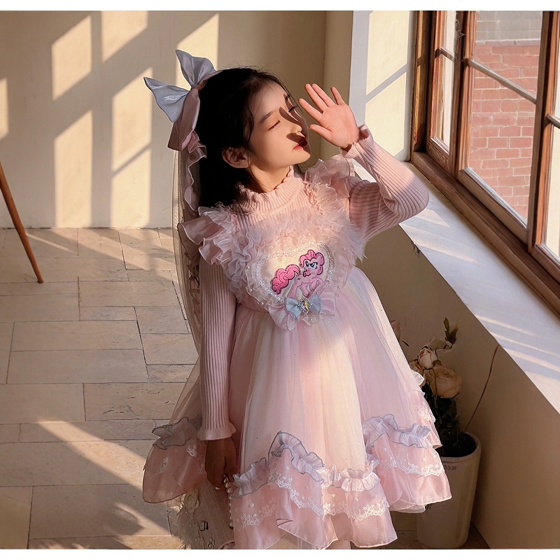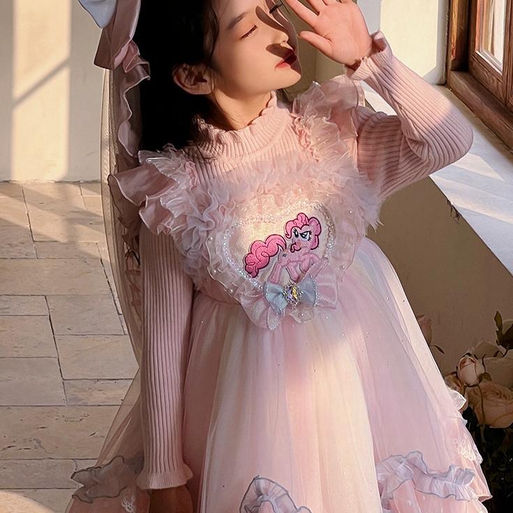 女童2024新款毛衣公主裙小女孩蓬蓬纱连衣裙女宝超洋气甜美的裙子